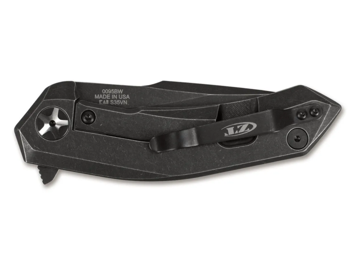 The Zero Tolerance 0095Bw Is A Modern Premium Tactical Knife With A Blade On Ball Bearings. The Blade Consists Of Powder-Metallurgical Cpm-S-35Vn. It Has A Dark Blackwash Finish And Opens With A Flipper. The Open Blade Is Secured With A Sturdy Framelock With Lockbar Reinforcement. The Ergonomically Shaped Handle Consists Of Strong Titanium Also With The Blackwash Finish. With A Decorative Two-Tone Axial Screw And Reversible Clip (Tip-Up/L-R).