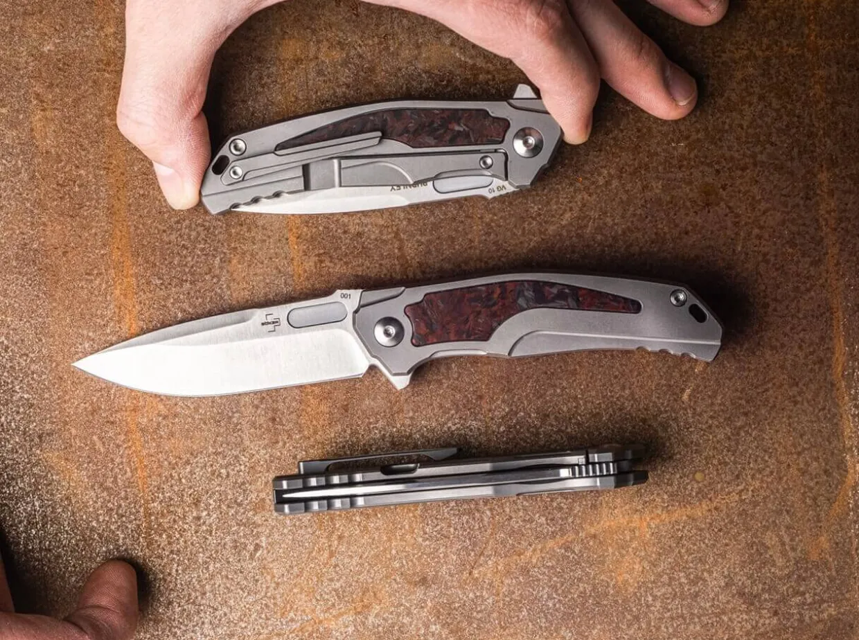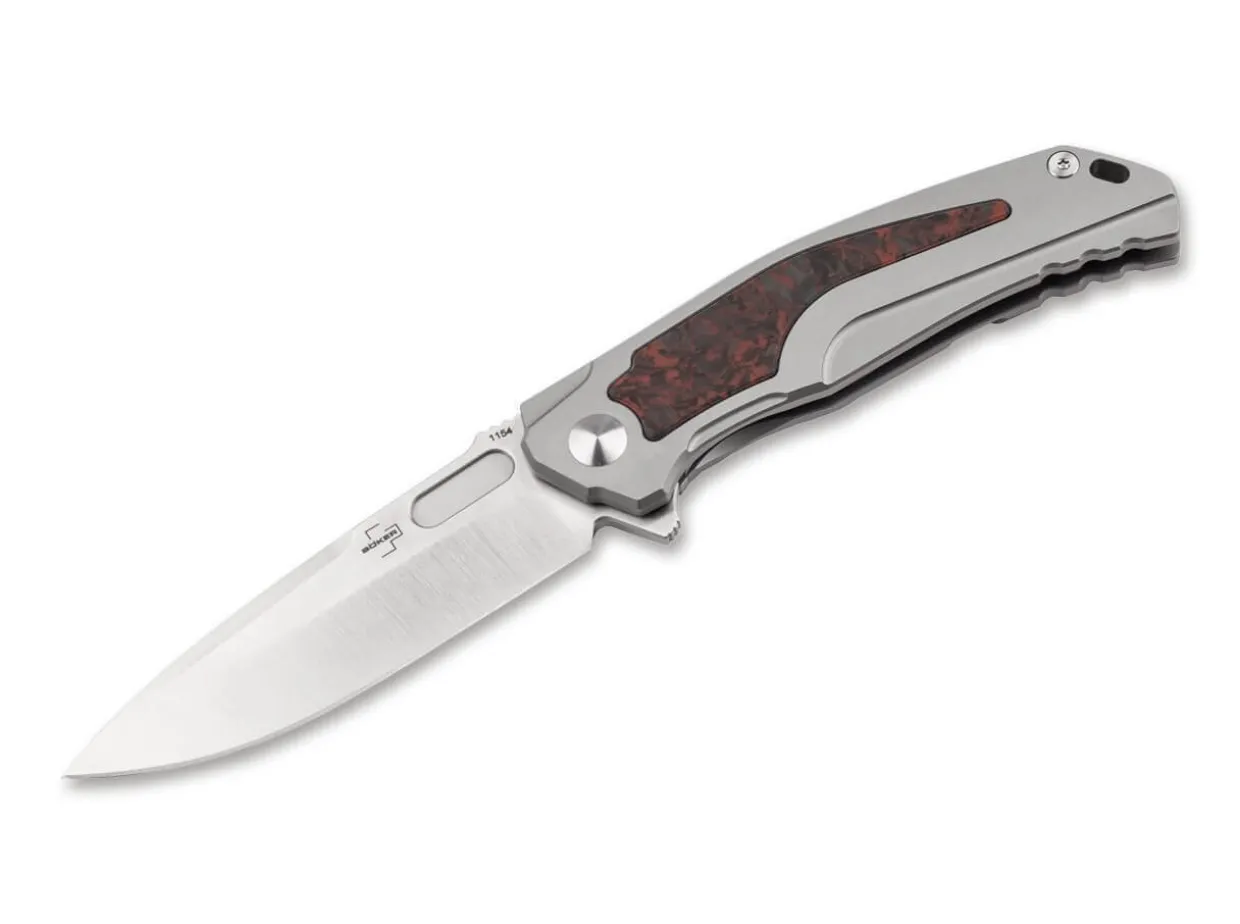 The Modern Boker Plus Aphex Mini Is The Significantly Scaled-Down Version Of The Boker Plus Collection 2020 Designed By Lucas Burnley. The Intricately Ground Blade Is Made Of Vg-10 And Is Supplied With An Impressive Hairline Finish And A Decorative Ricasso. Thanks To The Ball Bearing And Flipper, The Knife Is Particularly Easy To Open. The Ergonomically Shaped Handle Is Milled Three-Dimensionally From Titanium And Is Adorned With A Modern Inlay Of Wild Carbon Fibre With Red Inclusions. Jimpings Around The Thumb Rest And The Generously Dimensioned Spacer Increase Safety At Work. Supplied With A Lanyard Hole, Removable Titanium Clip (Tip-Up/R) And A High-Quality Nylon Case For Storage.