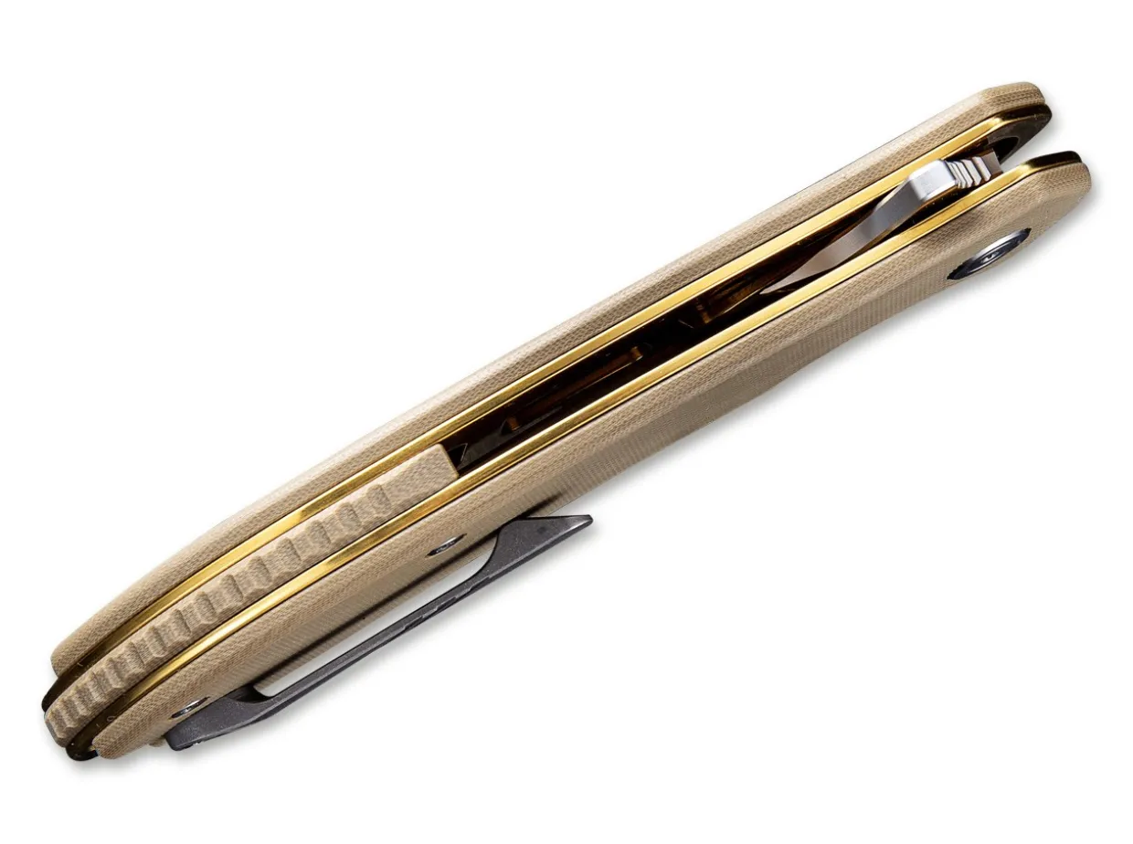 The Aquila Is A High-Quality Linerlock Pocket Knife From We Knife, Who Present A New Line With Civivi, Which Is Distinguished Above All By The Excellent Price-Performance Ratio. Gold-Coloured Tempered Stainless Steel Plates With G10 Scales. Ball Bearing Blade Made Of Vg-10 With Satin Finish. With Clip (Tip-Up).