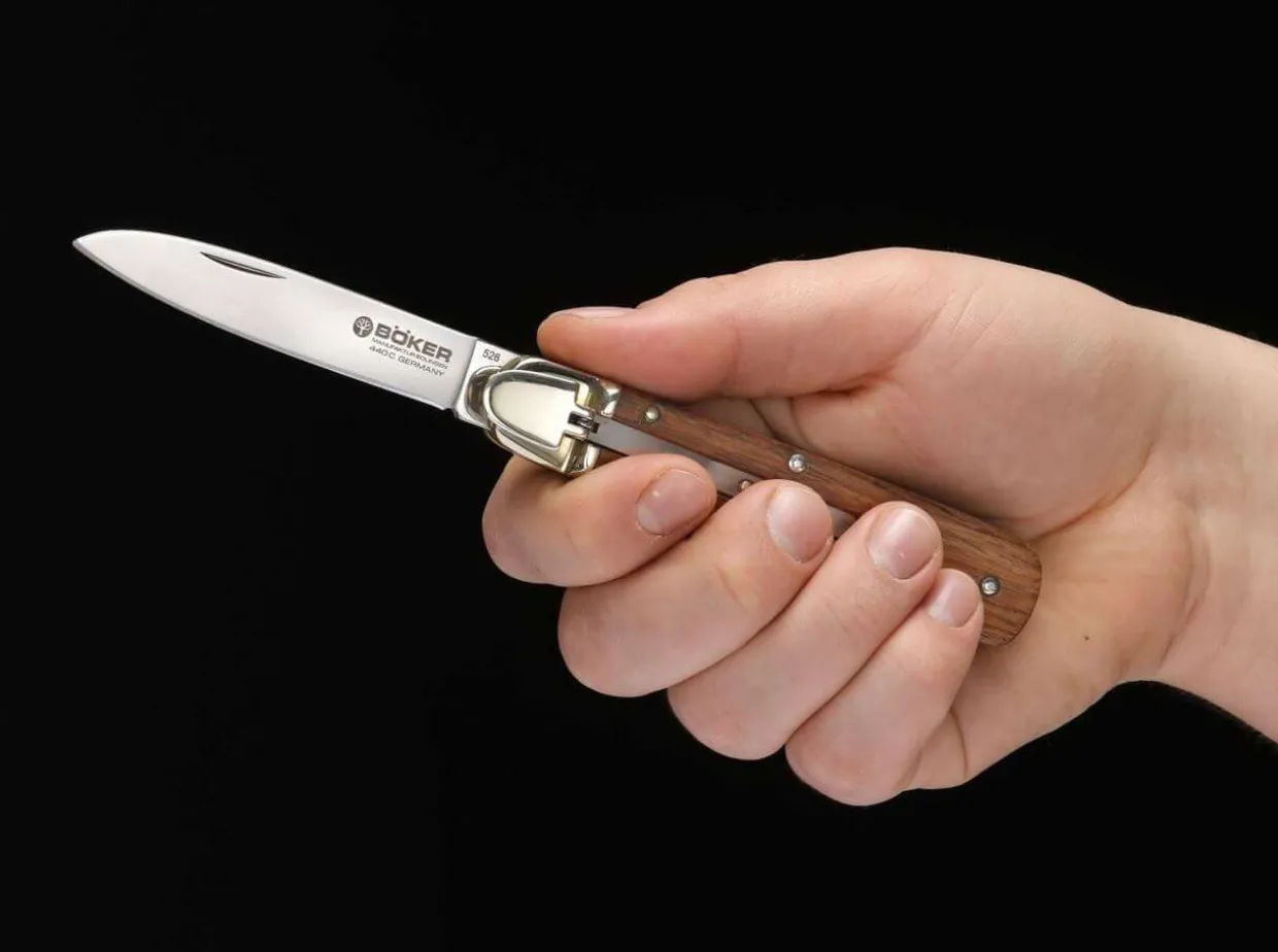 The Boker Automatic Classic Is The New Edition Of A Real Solingen Classic. The Traditional Automatic Knife Featuring The Typical Folding Release Lever Convinces With Flat Construction, Straight Design And The Entirely Classic Appearance. This Straightforward Pocket Knife That Was Extremely Popular In The Past, Already Found Many New Friends And Collectors With This New Edition. Blade Material Is The Proven 440C Stainless Steel, Providing Excellent And Long Lasting Cutting Performance. Handle Made Of Certified Imported Palisander Wood.