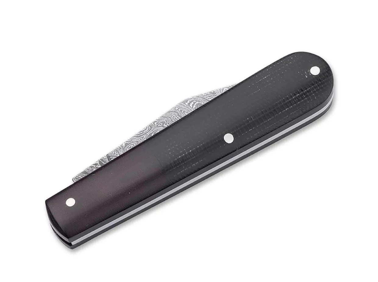 Das Klassische Barlow Erhalt In Dieser Besonderen Ausfuhrung Eine Edle Klinge Aus 200-Lagigem Damastim Muster Riple Und Eine Traditionell Anmutende Griffbeschalung Aus Kastanienbraunem- Sowie SchwarzemMicarta. Mit Seiner Charakteristischen, Uberlangen Backe Und Der Breiteren Klinge Ist Das Slipjoint-Messereinerseits Ein Kleiner, Absolut Hosentaschentauglicher Begleiter, Andererseits Aber Auch Gros Genug, Um Diemeisten Schneidarbeiten Des Alltages Problemlos Zu Bewaltigen. Die Auslieferung Erfolgt In Einem Hochwertigenfilz-Etui Zur Aufbewahrung. Handgefertigt In Der Boker Manufaktur In Solingen.