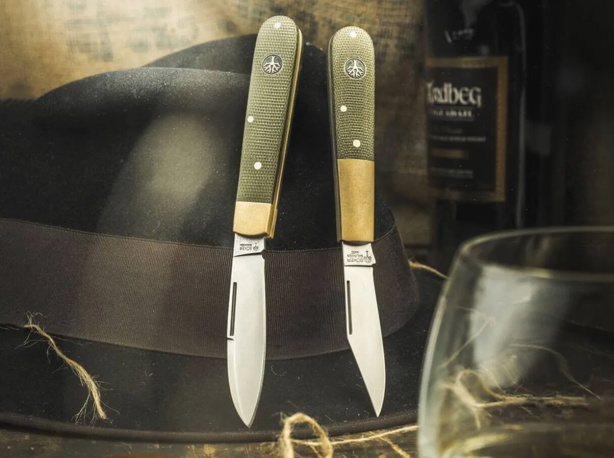 The Handy Boker Barlow Is A Lightweight Slip-Joint Pocket Knife That Can Handle Almost All Everyday Cutting Jobs Effortlessly. In This Version, It Is Equipped With Contoured Handle Scales Made Of Olive Green Canvas Micarta, While The Bolsters And Liners Are Made Of Matt Blasted Brass. The Resulting Colour Contrast Is Reminiscent Of The Privation-Laden Expeditions Of Discovery In Times Long Past. The Satin-Finished Blade Is Made Of N690 SteelAnd Is Opened By Nail Nick. The Operating Safety Of The Knife Is Increased By A 90° Stop When Opening And Closing The Blade. The Characteristic Teardrop Shape Of The Barlow Can Be Traced Back To The English Pocket Knives Of The 17Th Century, Making It Certainly One Of The Oldest Models Ever. Handmade In The Boker Knife Manufactory Solingen.