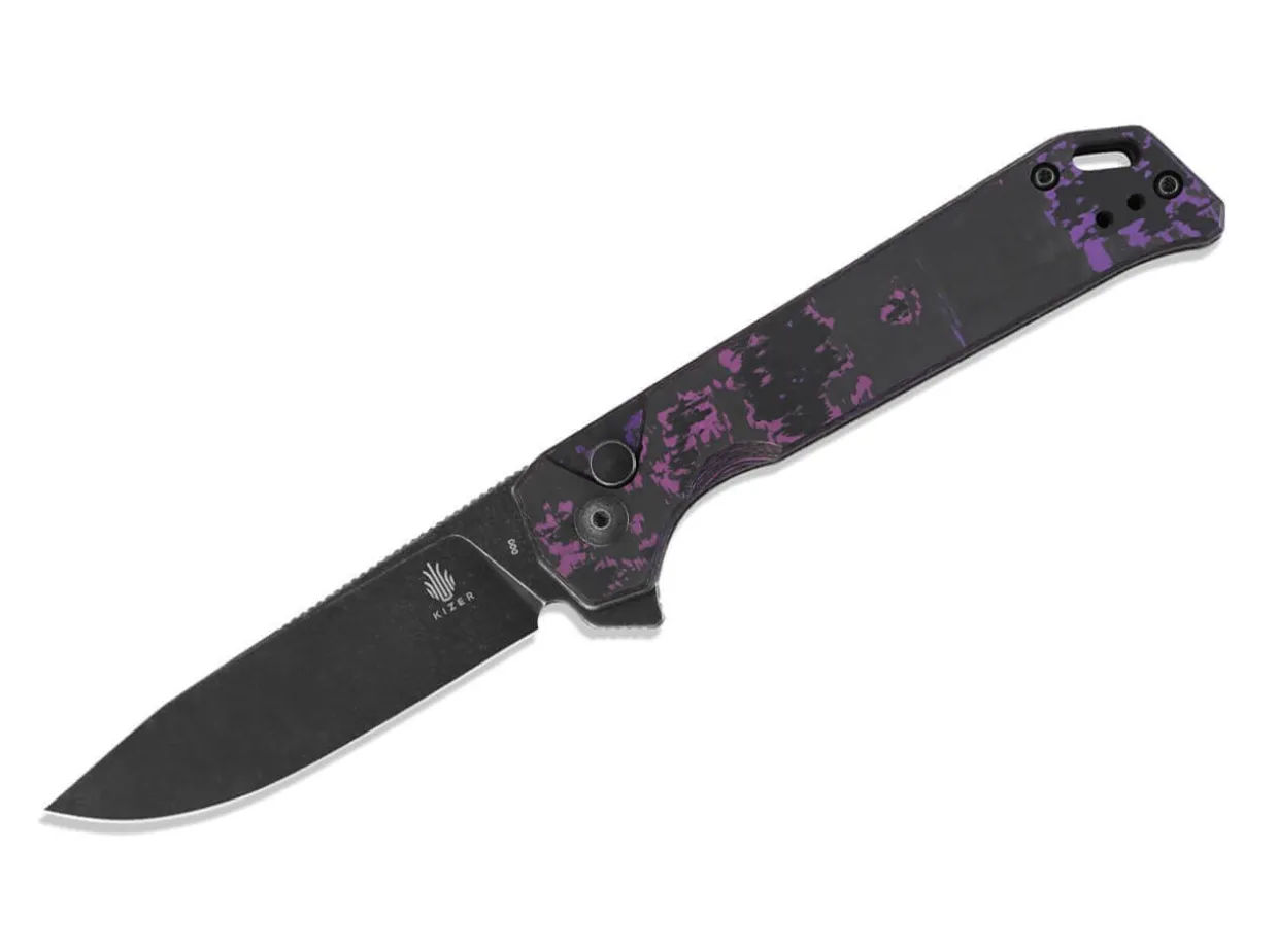 In This Particular Variant Of The Kizer Companion2, The Handle Of The Pocket Knife Is Made Of Fat Carbon And Has A Stunning Purple Spotted Pattern. The Quality Of The Powder Metallurgy Cpm-20Cv Blade Is The Same As Before, With Excellent Edge Retention And Corrosion Resistance And Versatility For Camping, Hiking Or Everyday Use. The Knife Is Opened By Flipper, While The Button Lock Unlocks The Black Coated Blade. With Lanyard Loop And Convertible Tip-Up Clip.