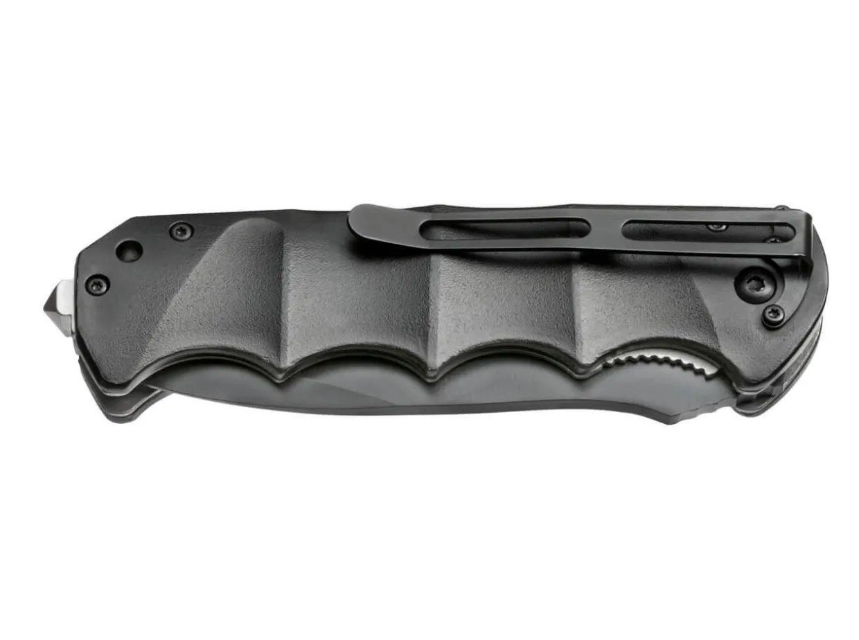 The Magnum Black Spear Ii Is An Impressive Tactical Knife That Is Ready For Any Mission, No Matter How Challenging. The Modified 440A Stainless Steel Spearpoint Blade Features A Slight Recurved Line For Effectively Performing Even The Most Demanding Cutting Tasks. The Linerlock Provides The Required Security. The Pronounced Finger Grooves Of The Black Aluminum Handle Always Guarantee A High Level Of Safety. With Glass Breaker, Lanyard Hole And Pocket Clip.