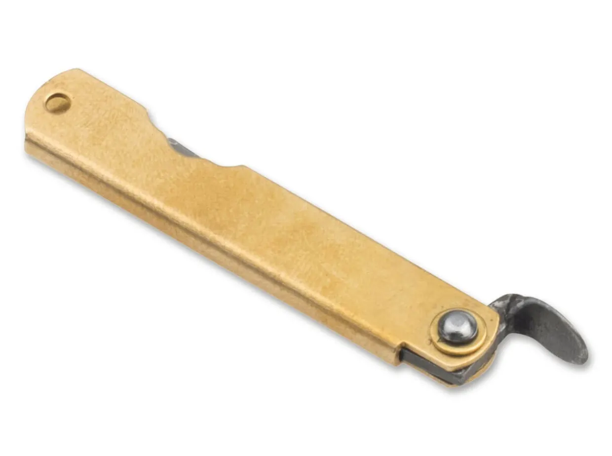 With A Total Length Of Almost Nine Centimetres, The Higo Bonsai Hoseki Damascus Is One Of The Smallest Pocket Knives In Our Range. The Miniature Version Of The Traditional Japanese Knife Is Made Of Brass So That A Unique Patina Forms On It Over Time. The Narrow Blade Is Made Of High-Quality Damascus. With Lanyard Hole.