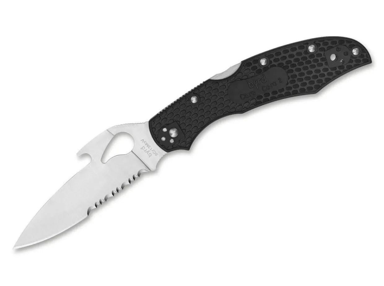 Das Spyderco Cara Cara 2 Aus Der Beliebten Byrd Serie. Neu Ist Die Version Mit Dem Patentierten Emerson Opener, Welches Ein Schnelles Offnen Der Klinge Schon Beim Ziehen Des Messers Ermoglicht. Der Klingenstahl Ist Aus 8Cr13Mov. Das Messer Lasst Sich Per Back-Lock Schliesen. Diese Variante Ist Mit Dem Teilwellenschliff Versehen.