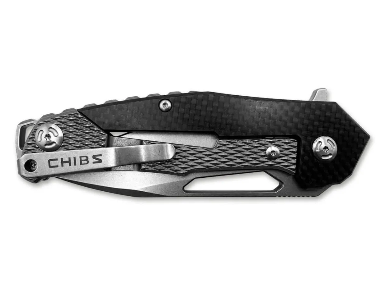 The Willumsen Chibs Stone Black Is Ready For The Next Adventure. Its Slim, Tactical Design Is Perfect For Cutting Rough Materials And Its Mirrored Handle Gives The Knife Its Unique Look. The D2 Blade Opens By Flipper And Is Locked By The Secure Framelock. The Titanium And Carbon Fibre Handle Is Partially Textured For A Secure Grip. With A Lanyard Hole And A Clip (Tip-Up / R).