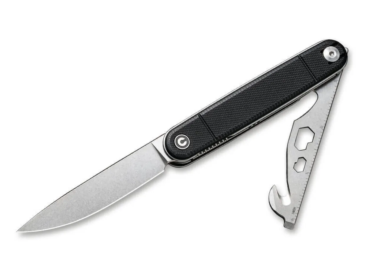 Das Civivi Crit Findet Immer Einen Haken – Und Zwar An Der Praktischen Hilfsklinge Mit Mehreren Funktionen Wie Kapselheber, Lineal Oder Gurtschneider. Die Beiden Kugelgelagerten Klingen Bestehen Aus Dem Hochfesten Nitro-V Und Werden Per Frontflipper Geoffnet Und Sicher Per Linerock Verriegelt. Der Griff Aus Schwarzem G10 Ist Uber Jeden Zweifel Erhaben Und Bietet Sicheren Halt Bei Jeglichen Schneidarbeiten. Mit Clip (Tip-Up/R).