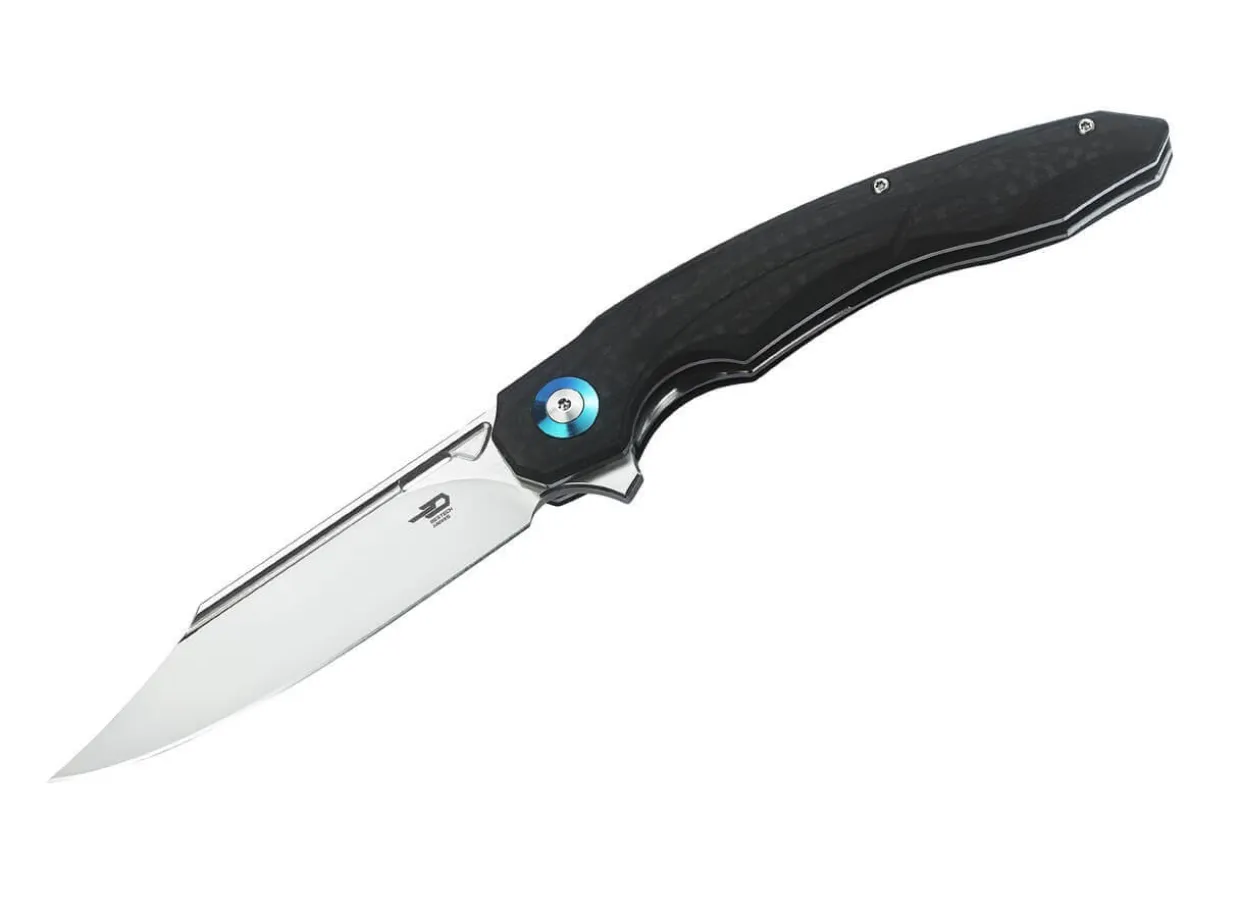 The Bestech Fanga Is Equipped With An Elaborately Ground Blade Made Of D2.The Pocketknife Was Designed By Grzegorz Grabarski, Also Known As Kombou. The Three-Dimensional Milled Handle Is Made Of G10 And Carbon Fiber With The Different Layers Clearly Recognizable. Thanks To The Elaborate Milling And The Pronounced Index Finger Choil, The Fanga Offers A Secure Grip Under Any Conditions.The Blade Opens With A Flipper And Is Secured By A Linerlock. With A Blue Anodized Clip (Tip-Up).