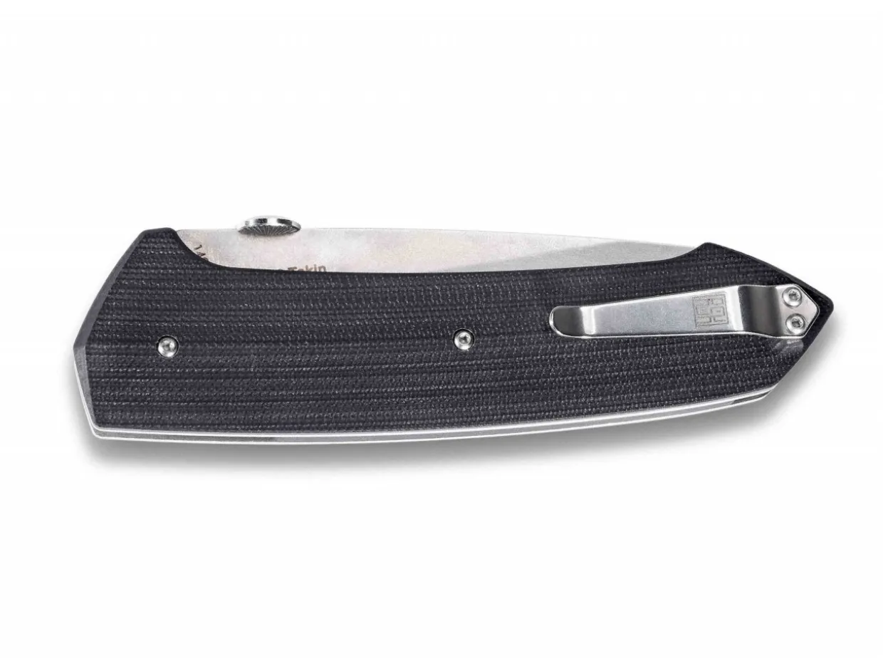 The Utility Of Wharncliff Blades Has Resulted In Considerable Popularity Of This Blade Shape. In Particular, The Modified Versions With A Slightly Trailing Edge Are Unmatched In Terms Of Their Versatility. At A Blade Length Of More Than 11 Cm, The H9 Is Clearly Among Full-Sized Folders. Liner Lock With Black G10 Scales. Shipped With Nylon Belt Pouch.