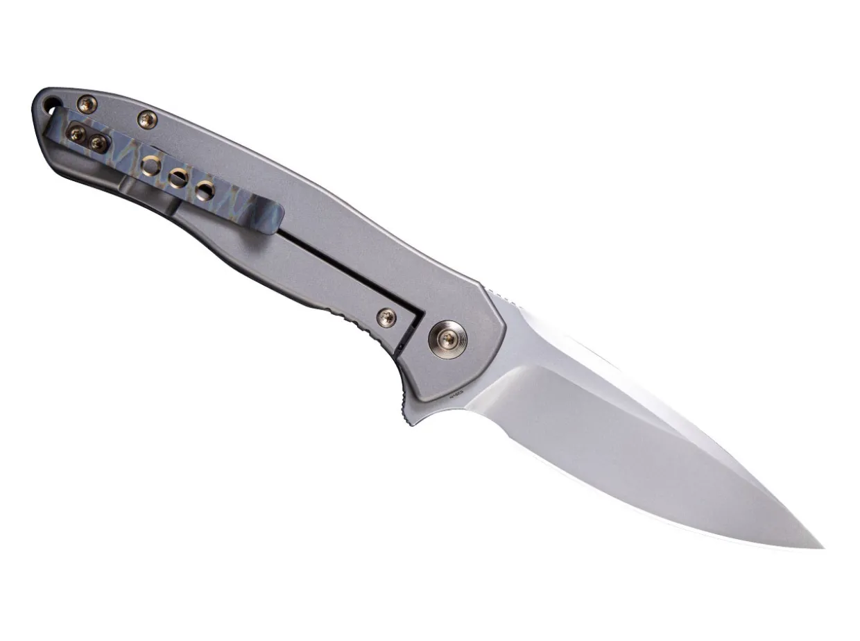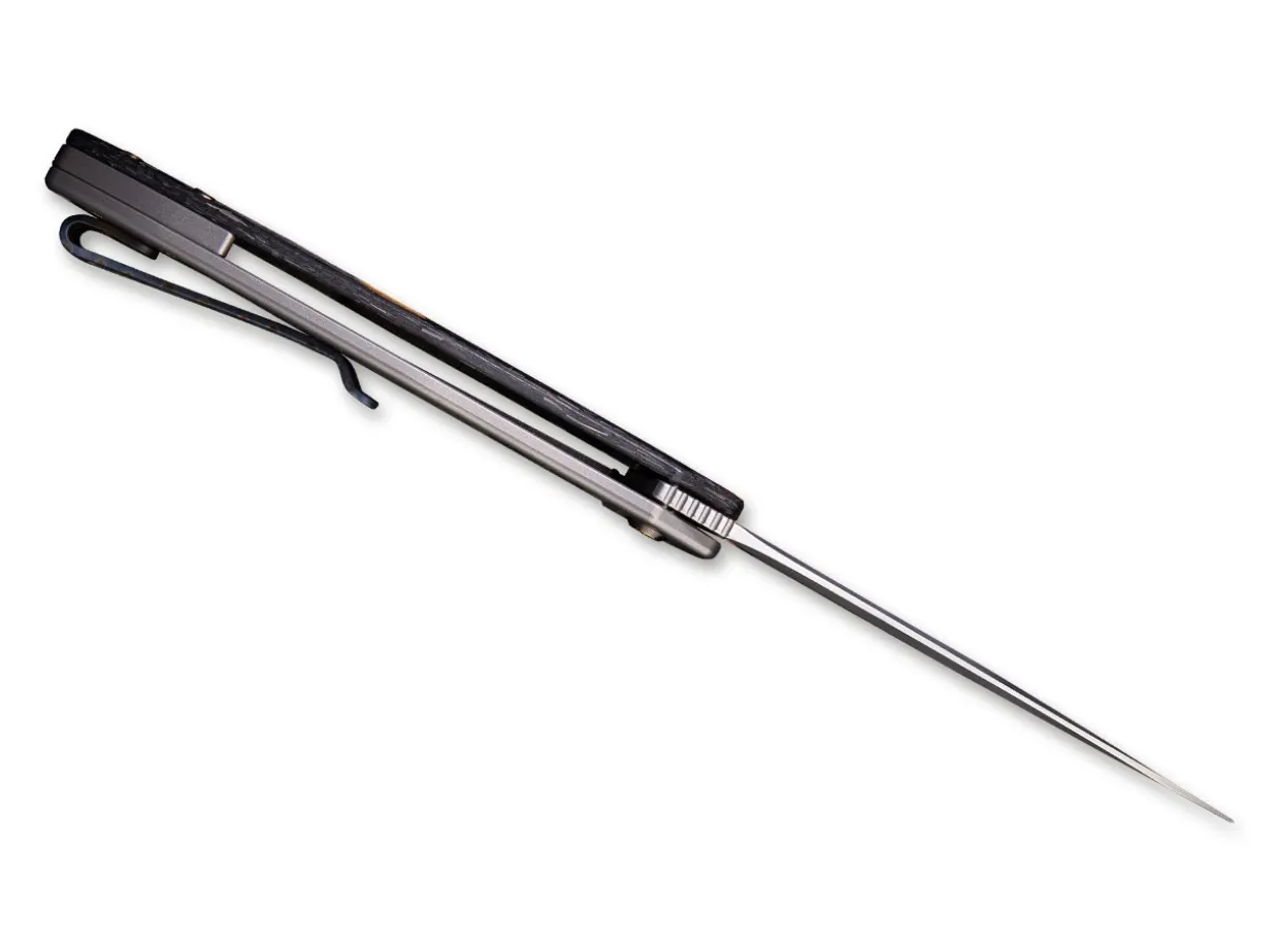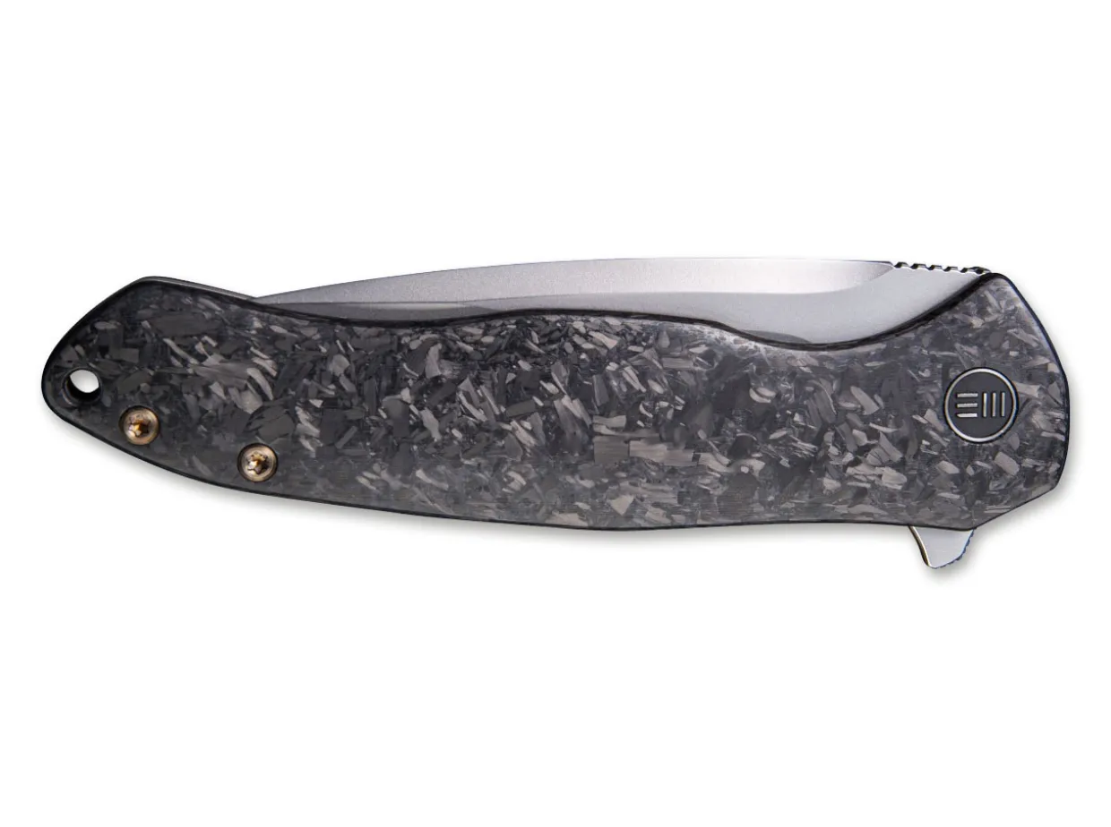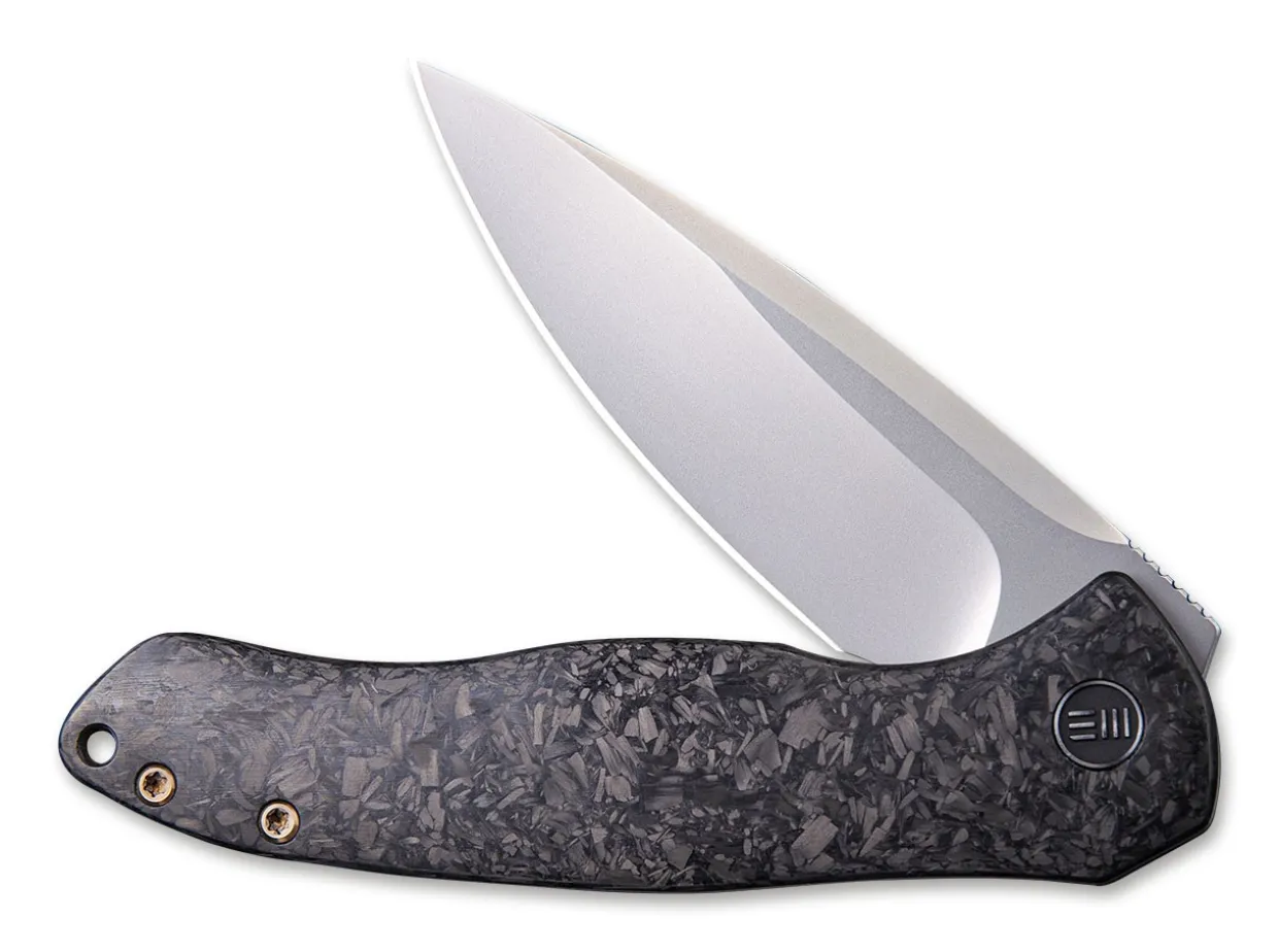 The We Knife Kitefin Is A Medium-Size, Universal Edc Knife With A Wide, Drop Point S35Vn Blade Featuring A Generous Finger Choil For Detailed Cutting. The Flipper Ensures Smooth Opening Of The Ball Bearing Mounted Blade And Also Serves As A Finger Guard. A Sturdy Framelock Locks The Blade Firmly In Position Allowing Safe Handling. The Kitefin Knife Series Is Available In Different Colored Handles And Styles. This Version Features Stylish Gray Titanium Handle Scales On The Back And Shredded Carbon Fiber On The Front. With Lanyard Hole And Reversible Deep-Carry Clip (Tip-Up).