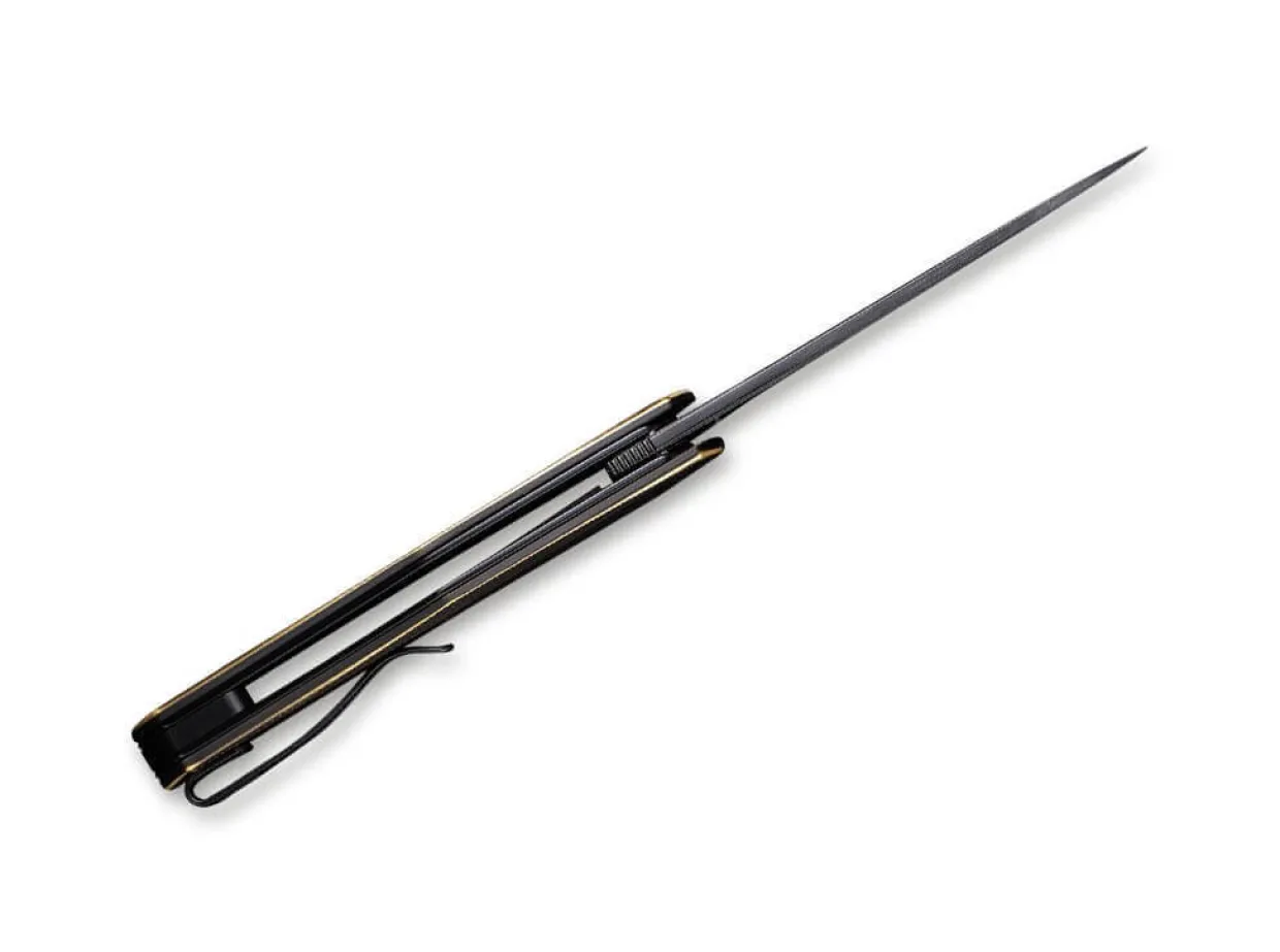 Das Schlanke Und Leichtgewichtige Lazar Wurde Von Elijah Isham Entworfen Und Vereint Schlichte Eleganz Mit Einer Hohen Alltagstauglichkeit. Zum Einsatz Kommt Eine Damast-Klinge, Die Per Flipper Geoffnet Und Vom Stabilen Linerlock Gesichert Wird. Der Griff Aus Kupfer Ist Ergonomisch Geformt Und Liegt Bei Jeder Anwendung Sicher In Der Hand. Mit Clip (Tip-Up/R).