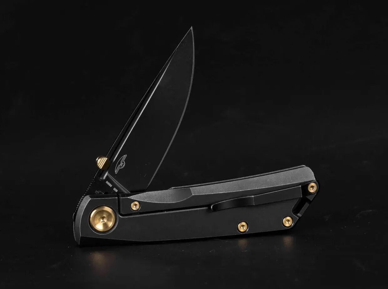 The Bigger Brother Of The Real Steel Luna Eco Is An Elegant Edc Knife, Which Is Completely Black. The Frame Lock Folder With N690 Blade Opens Optionally By Nail Cut Or Removable Thumb Pin, While The Titanium Handle Offers Flexible Transport Options Through The Deep Carry Clip (Tip-Up/R) And The Lanyard Loop. Optical Highlights Are The Gold-Colored Screws And The Thumb Pin.