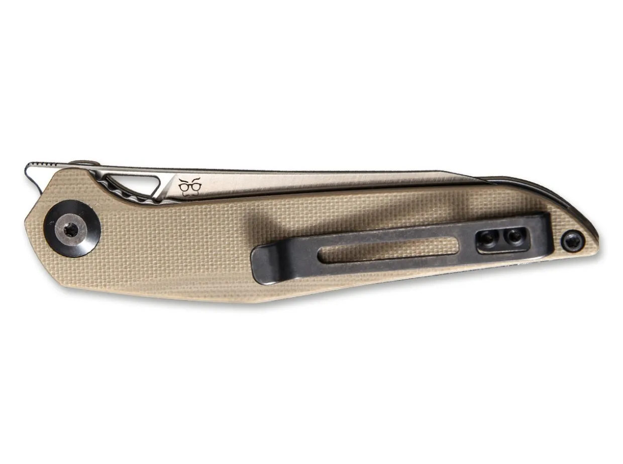 The Mckenna By Elijah Isham Is A Stainless Steel Linerlock With G10 Handle Scales. The Blade On Ball Bearings Can Be Opened With A Front Flipper Or Thumb Opening. The Slimline Folder Has A Reversible Clip (Tip-Up/L-R).
