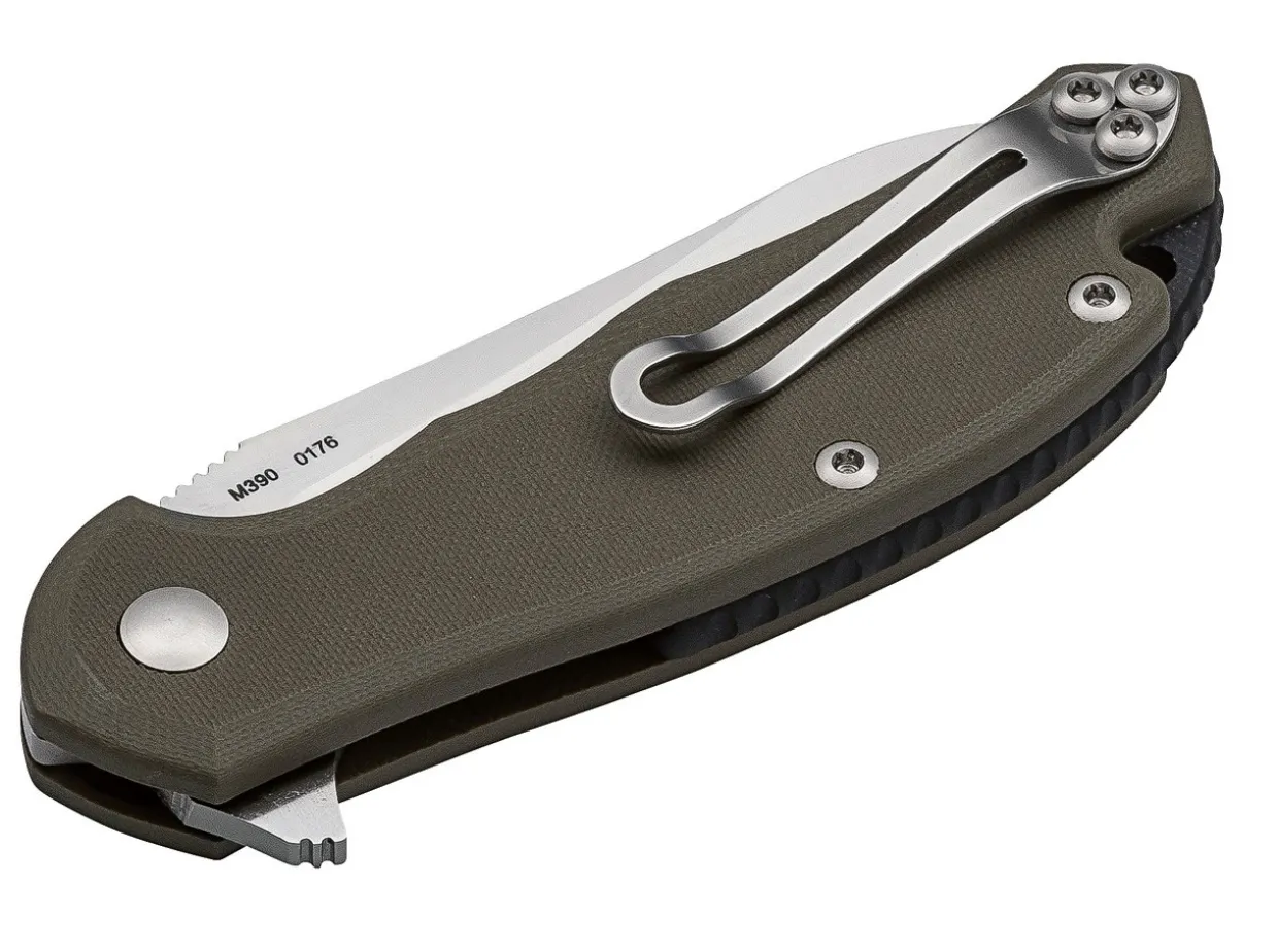 The Modus, Made In Italy, Is Intended To Be A Handy Edc Knife, Which Offers Perfect Ergonomics Even In Large Hands, Despite Its Compact Dimensions. The Bearing-Mounted Blade Is Made From Powder Metallurgical Bohler M390 Steel And Opens Per Flipper. The Liner Lock Holds The Blade In Place. Spacer And Blade Back With Serration For A Secure Grip. With Reversible Clip (Tip-Up / L-R). With Handle Scales Made From Green G-10 And Black Spacer.