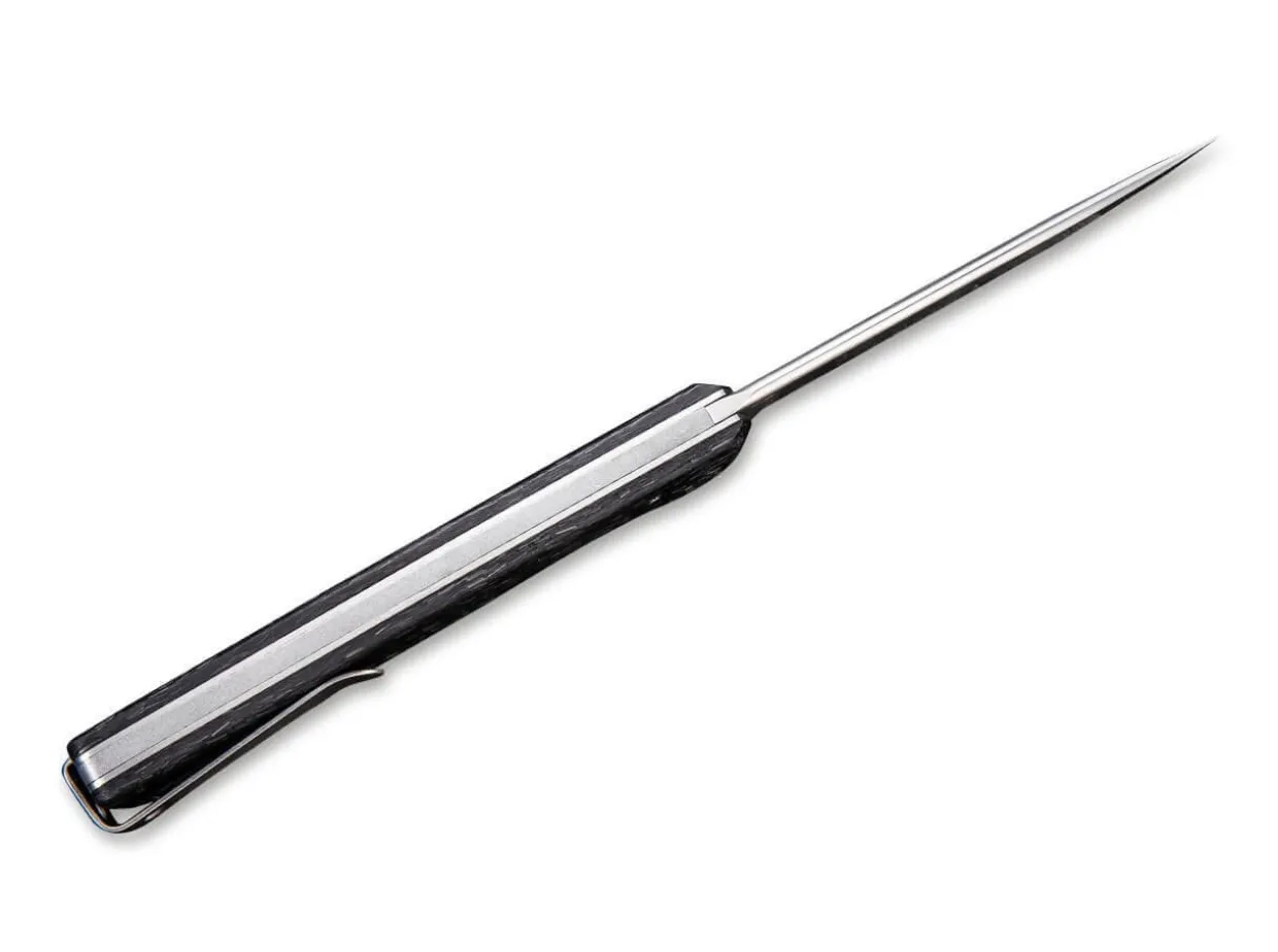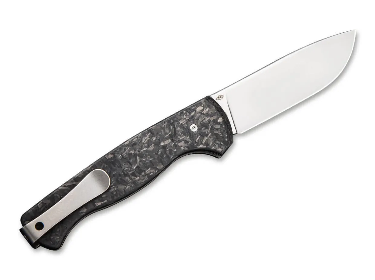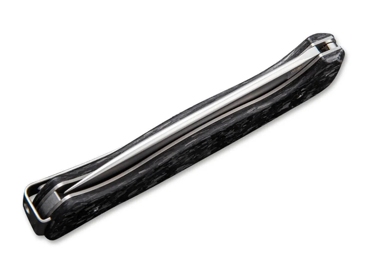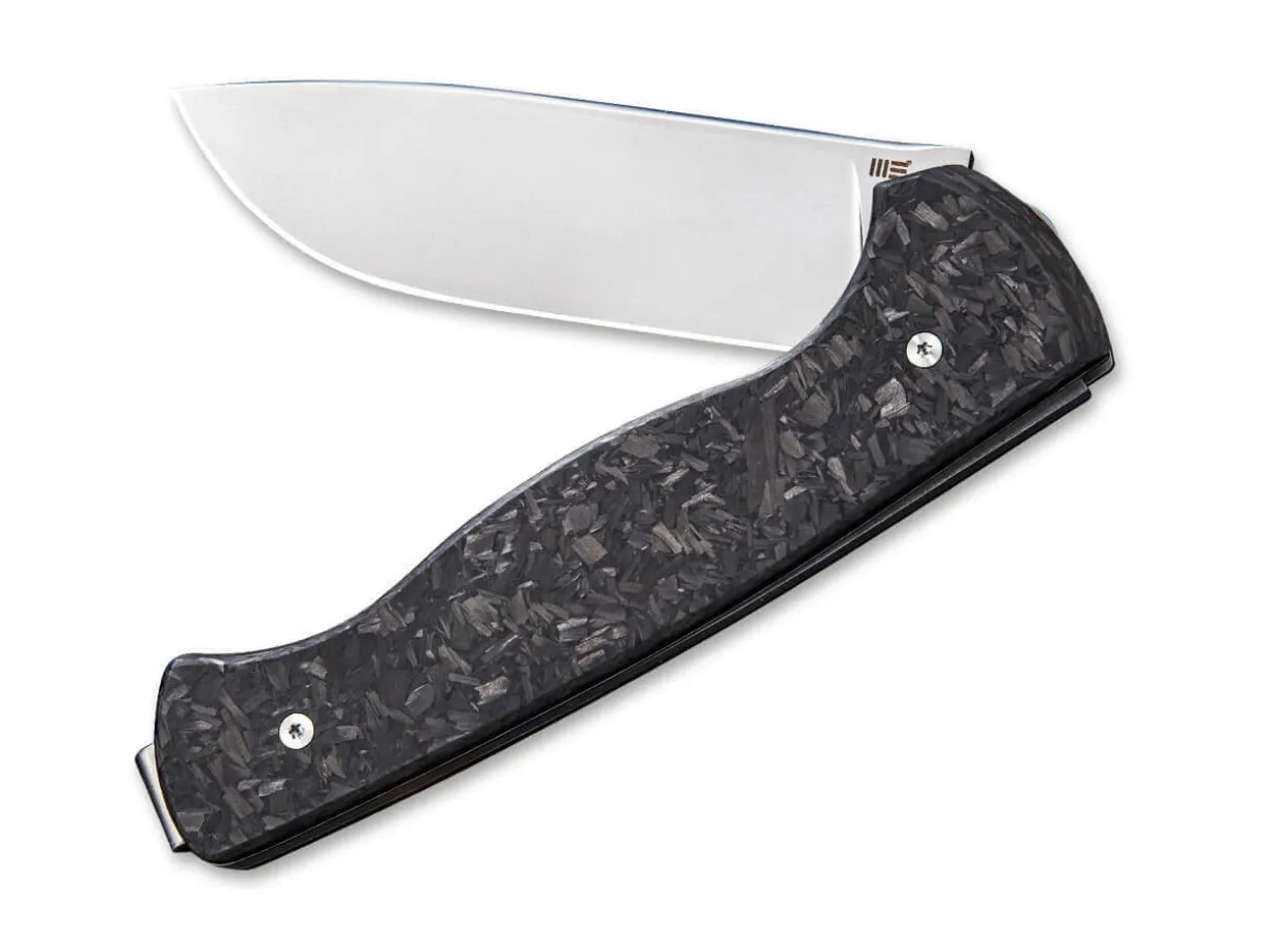 Das Feine Slipjoint-Messer Mrf Von We Knife Entstand In Zusammenarbeit Mit Messermacher Markus Reichart, Der Vor Allem Fur Feststehende Messer Bekannt Ist. Dieses Messer Ist Mit Einer Breiten Droppoint-Klinge Aus Cpm-S-35Vn Ausgestattet. Die Polierte Perlgestrahlte Klinge Ist Mit Einem Grosen Griff Aus Schwarzer Geschredderter Kohlefaser Gepaart, Die Das Gewicht Reduziert Und Dem Messer Eine Schone Asthetik Verleiht. Fangriemenose Und Clip (Tip-Up) Sorgen Dafur, Dass Das Messer Immer Griffbereit Ist.