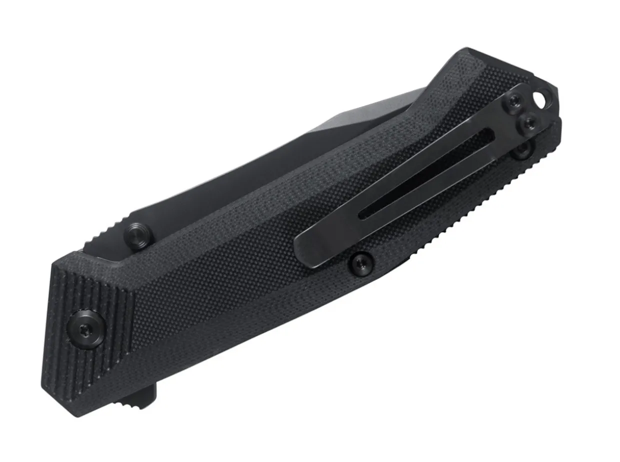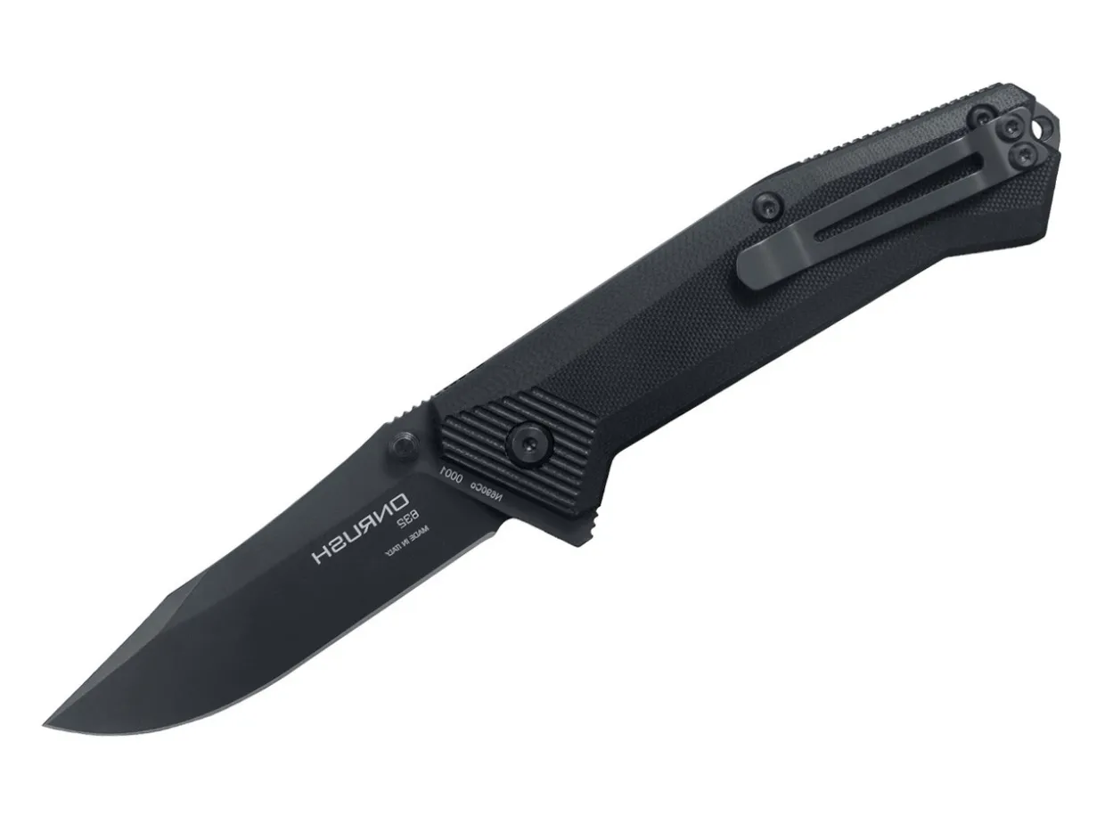 The Steel Will Onrush Pocketknife Has A Bohler N690 Steel Clip Point Blade With A Black Coating. Similar To The Bruiser Folder, The Onrush Boasts Tactical Ready Design While Staying Lean. Steel Will, Knowing The Importance Of Quick Deployment, Equipped The Onrush With A Flipper Opener And Thumb Studs. The Handle Exhibits Machined Black G10 Scales Over Bead Blasted Stainless Steel Liners And The Black Coated Back Spacer Extends Beyond The Liners With Notches For Grip And A Breaker Tip At The Base. Includes A Reversible, Tip-Up Configured Pocket Clip And Nylon Belt Sheath.