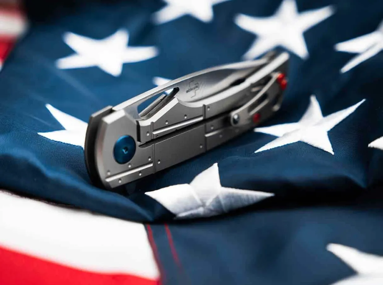 Another Highlight Is The Titanium Handle, Which Replicates The Studded Light Metal Plates Of The Aircraft In Great Detail. The Blue Blade Axle Screw, Which Bears The Silver Star Of The Us Army, And The Red Anodised Screws, Which Are Based On The Colour Scheme Of The Tail Rudder, Are Striking. Extreme Reliability Is Promised By The Titanium Framelock With A Stainless–Steel Inlay, Which Holds The Blade Securely In Place Even During Difficult Work. Despite The Clear Lines, The Handle Lies Comfortably In The Hand Thanks To Ergonomic Cutouts. The Titanium Clip Is Machined From Solid And Allows For Tip-Up (R) Carry, While The Lanyard Hole Offers Further Attachment Options. A Must For All Knife Collectors And Friends Of Historic Aircraft. Supplied With A High-Quality Nylon Pouch For Storage.