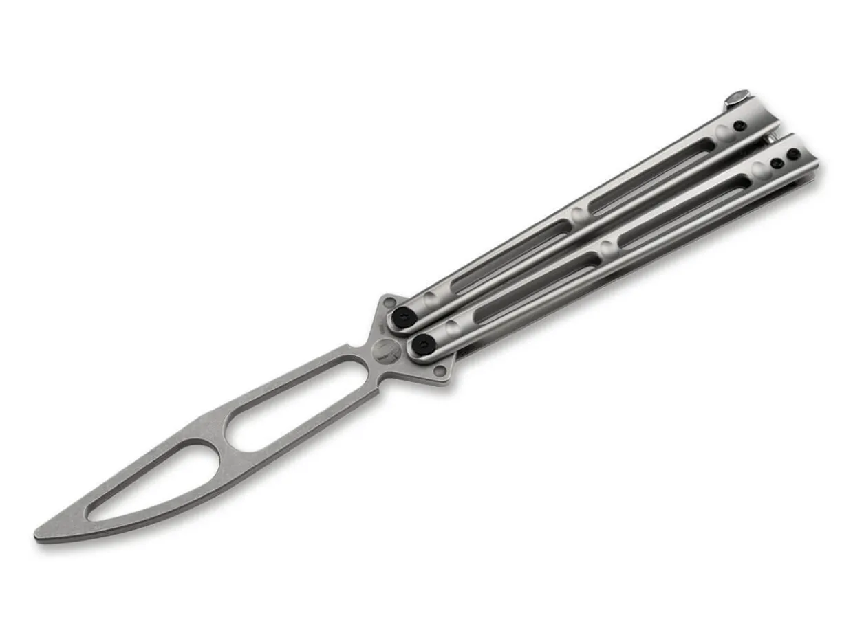 The Boker Plus Papillon Trainer Corresponds To The Construction Of The Real Balisong Knife, But Is Supplied With A Blunt Dummy Instead Of A Real Blade. Like The Original, The Trainer Is Supplied With Skeletonised Stainless Steel Handle Halves With A Matt Beadblast Finish. Also Known As The Butterfly Knife, The Balisong Owes Its Name To The Simple Folding Mechanism Of The Split Handle, Which Is Much Less Susceptible To Dirt Than Other Mechanisms. The Ball-Bearing Clippoint Blade Of The Trainer Is Made Of 420 Steel And Is Supplied With A Matte Stonewash Finish As Well. The Dummy, Slightly Rounded At The Edges, Has Generous Recesses For Direct Differentiation From Sharpened Blades And To Match The Weight Of The Original Balisong. The Pronounced Ricasso Underlines The Tactical Character Of The Training Tool. Supplied With A High-Quality Nylon Case For Storage.