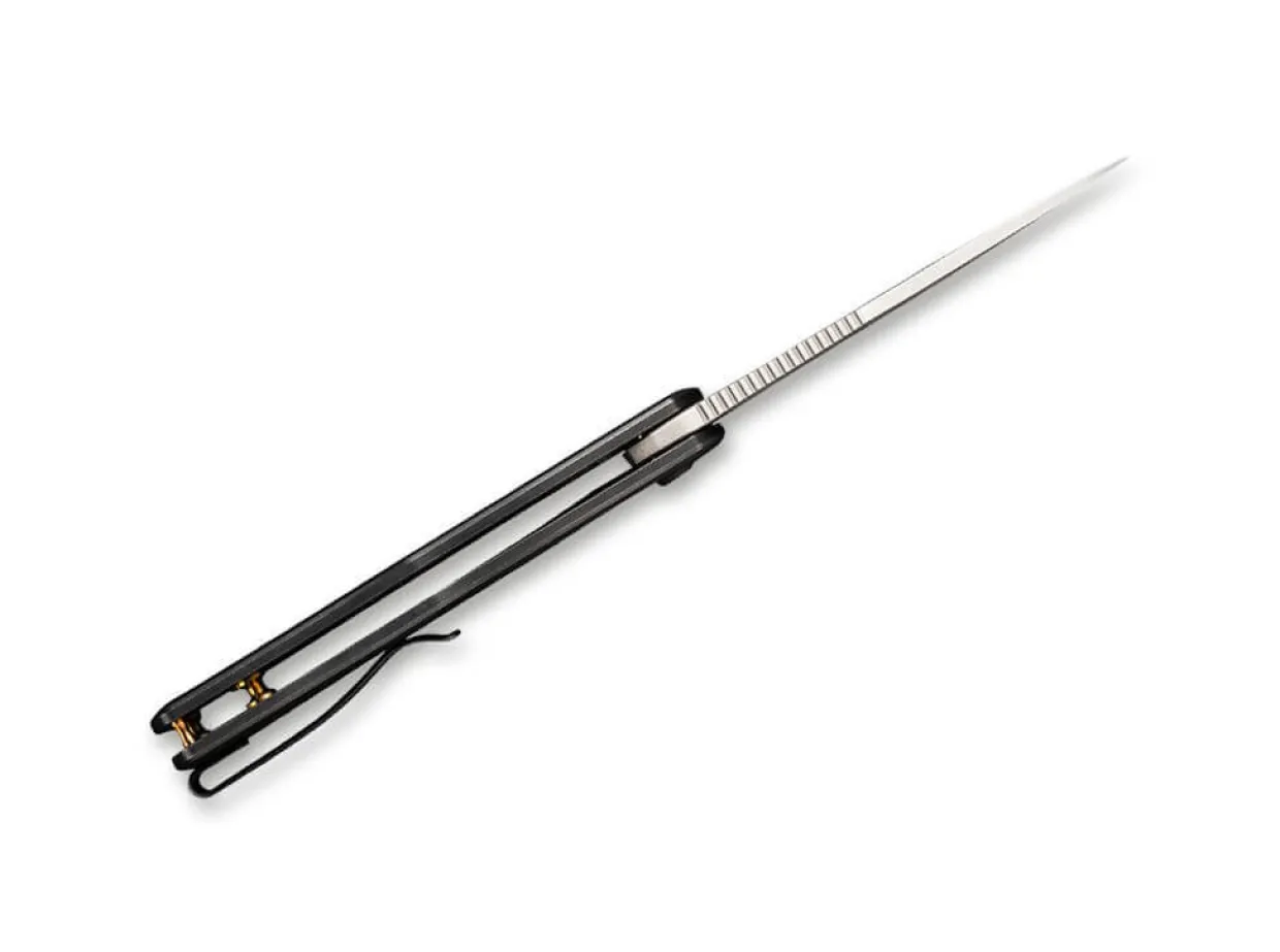 The Elegant Framelock Folder Proves Once Again That Aesthetics And Function Need Not Be Excluded. The Powder-Metallurgical Cpm-20Cv Blade Is Opened By A Flipper, While Jimpings On The Back Of The Blade Promise Safe Handling. Excellent Ergonomics And Decorative Accents Characterise The Black Titanium Handle. Supplied With A Clip (Tip-Up/R).