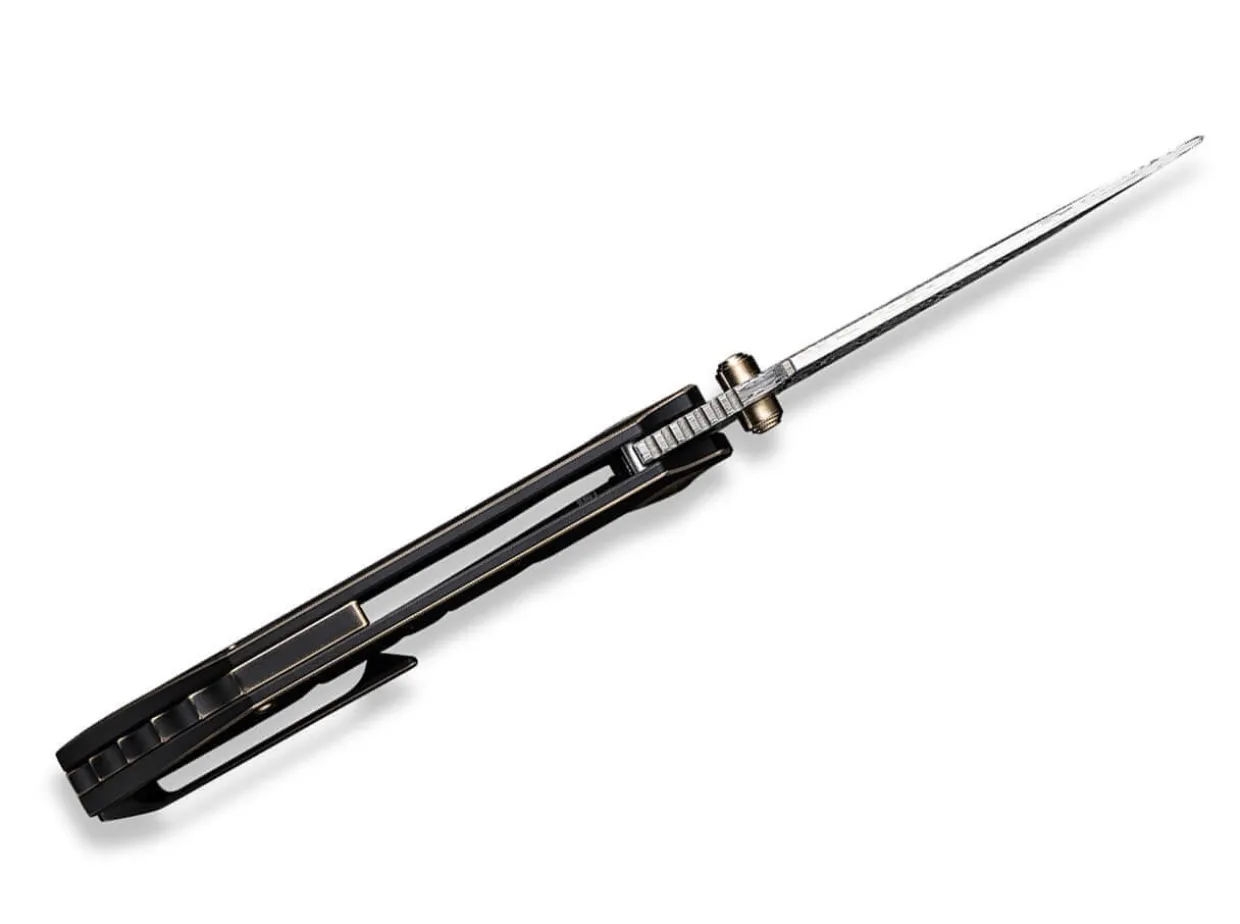 Contrary To Its Name, The We Knife Riff-Raff Proves To Be A Reliable Pocket Knife With Good Manners And Excellent Features. Always On Hand Is The Ball Bearing Clippoint Blade Made Of Mystical Heimskringla Damasteel, Which Opens By Thumb Stud And Its Stunning Pattern Harmonizes Perfectly With The Black Titanium Handle With Bronze Contours. Jimpings On The Back Of The Blade Increase The Working Safety Of The Frame Lock Folder, While The Screws, Also In Bronze, Complete The Glamorous Appearance. With Tip-Up Clip (R).