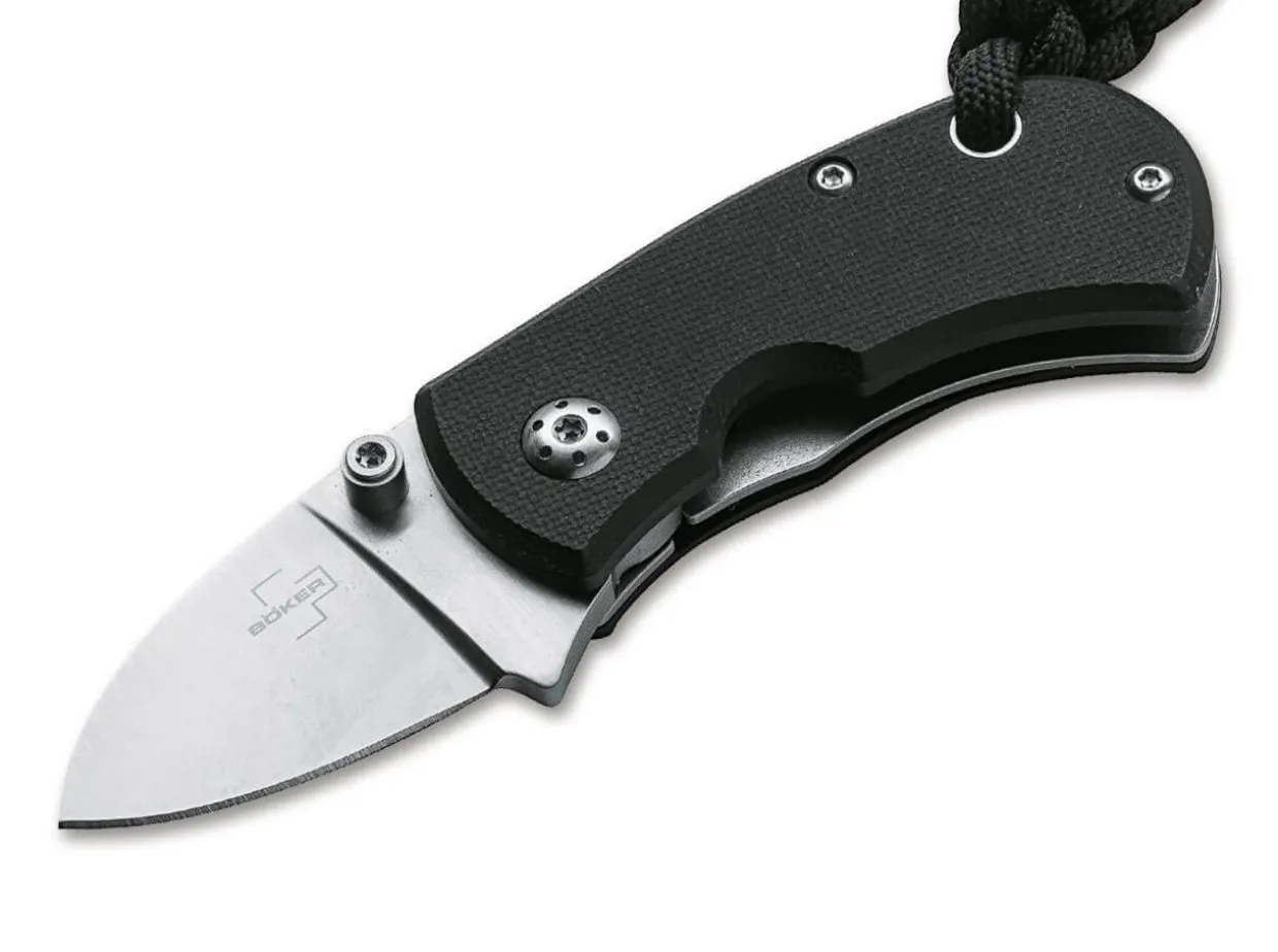 The Extremely Compact Boker Plus Rockhopper By Michael Reinhold Surprises As A Practical Two-Finger Knife With Excellent Ergonomics And An Extremely Comfortable Hand Position, Which Is Further Improved By The Black Lanyard. It Is Equipped With A Short Blade Made Of D2, Which Is Opened By A Removable Thumb Stud On Both Sides And Locked In Place By A Stable Stainless Steel Linerlock In The Textured G10 Handle. The Decorative Blade Axle Screw Is Clearly Curved. With Reinforced Lanyard Hole, Deep Carry Clip (Tip-Up/R) And High-Quality Nylon Case For Storage.