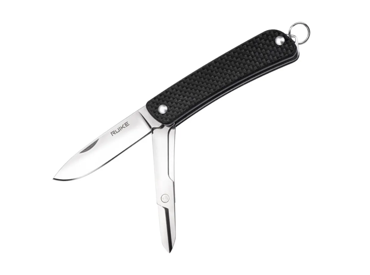 The Ruike S Series Is A Series Of Practical Keychain Knives. The 5.3 Cm Long Polished Blade Made From Sandvik 12C27 Stainless Steel Has Enhanced Thickness And Width For Longer Life And More Versatile Use. It Also Comes With A Handy Pair Of Scissors. The Textured, Black G10 Handle Sits Comfortably In The Hand For A Secure Grip And Is Ideal For Long-Term Use. The Knife Opens With A Nail Nick And Is Secured With The Help Of A Slipjoint. With Loop, Key Ring And Tip-Down Clip.