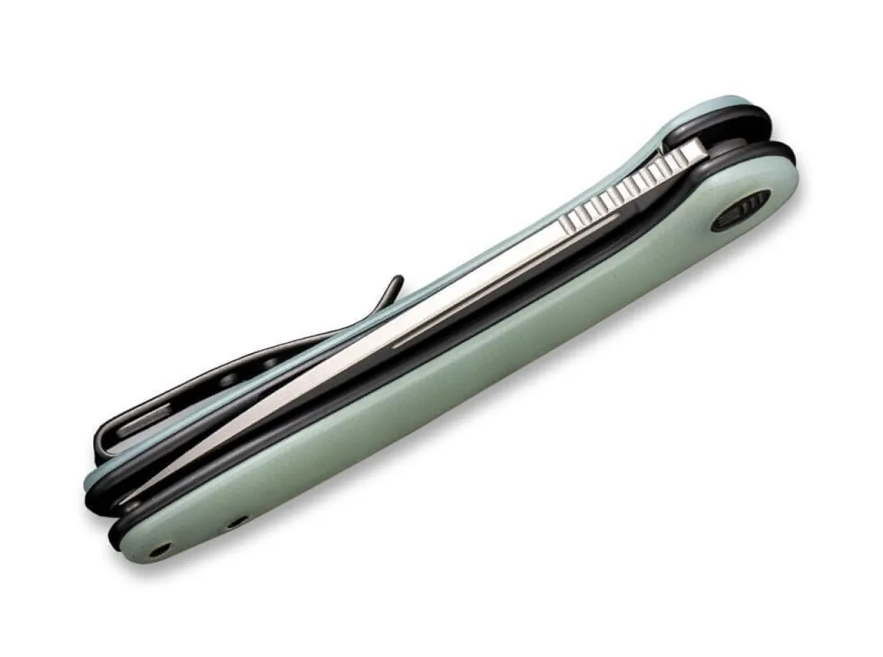 Das We Knife Saakshi Zahlt Zu Den Eleganten Edc Messern Und Uberzeugt Mit Pulvermetallurgischer Cpm-20Cv Klinge Und Einem Ergonomischen Griff Aus Jadegrunem G10. Flipper Und Linerlock Versprechen Ein Unkompliziertes Und Sicheres Arbeiten Mit Dem Messer Bei Den Alltaglichen Schneidaufgaben. Mit Clip (Tip-Up/R) Und Passendem Etui.