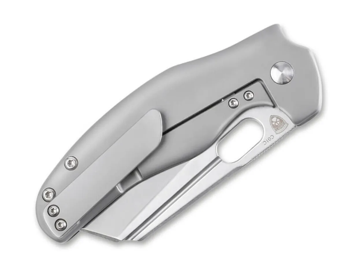 Das Kizer Sheepdog C01C Thumbhole Besitzt Eine Schwere Beilartige Klinge Von Chris Conaway Von Sheepdoog Knives. Die Grose Sheepfoot-Klinge Wird Aus Hochwertigen Cpm-S-35Vn Gefertigt Und Ist Mit Einer Hohlkehle Versehen. Die Wuchtige Klinge Des Framelock Folders Lasst Sich Dank Des Verbauten Kugellagers Leichtgangig Und Sanft Per Daumenoffnung Ausklappen. Die Konturierten Grauen Titan-Griffschalen Bieten Komfortablen Grip. Dieses Messer Bietet Eine Bemerkenswerte Kombination Aus Taktischer Funktionalitat Und Einem Modernen Erscheinungsbild. Mit Abnehmbarem Clip (Tip-Up/R).