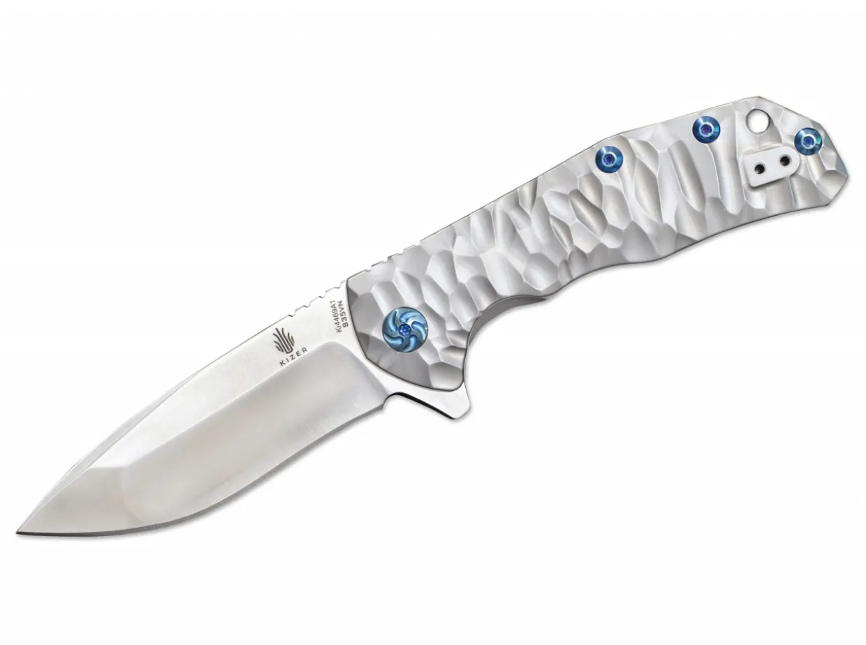 With Experience Spanning More Than 20 Years, Kim Ning Is Already A Veteran Among Knifemakers, Regardless Whether This Involves Precision-Made And Premium Folders Or Powerful And Functional Fixed-Blade Knives. Kims Feel For Perfection And Aesthetics Is Found In Every Single Design Element. With Its Three-Dimensional Texture On The Titanium Handle, The Shoal Is Reminiscent Of A Sandbank On Which The Waves Leave A Soft And Irregular Pattern In The Sand. The Blue Screw Heads Provide Additional Highly Attractive Contrast To The 6Al4V Titanium Scales. The Frame Lock, Which Engages The S35Vn Blade, Features A Stainless Steel Insert. Includes Reversible Clip (L/R). Shipped With Kizer Zippered Pouch And Maintenance Cloth.