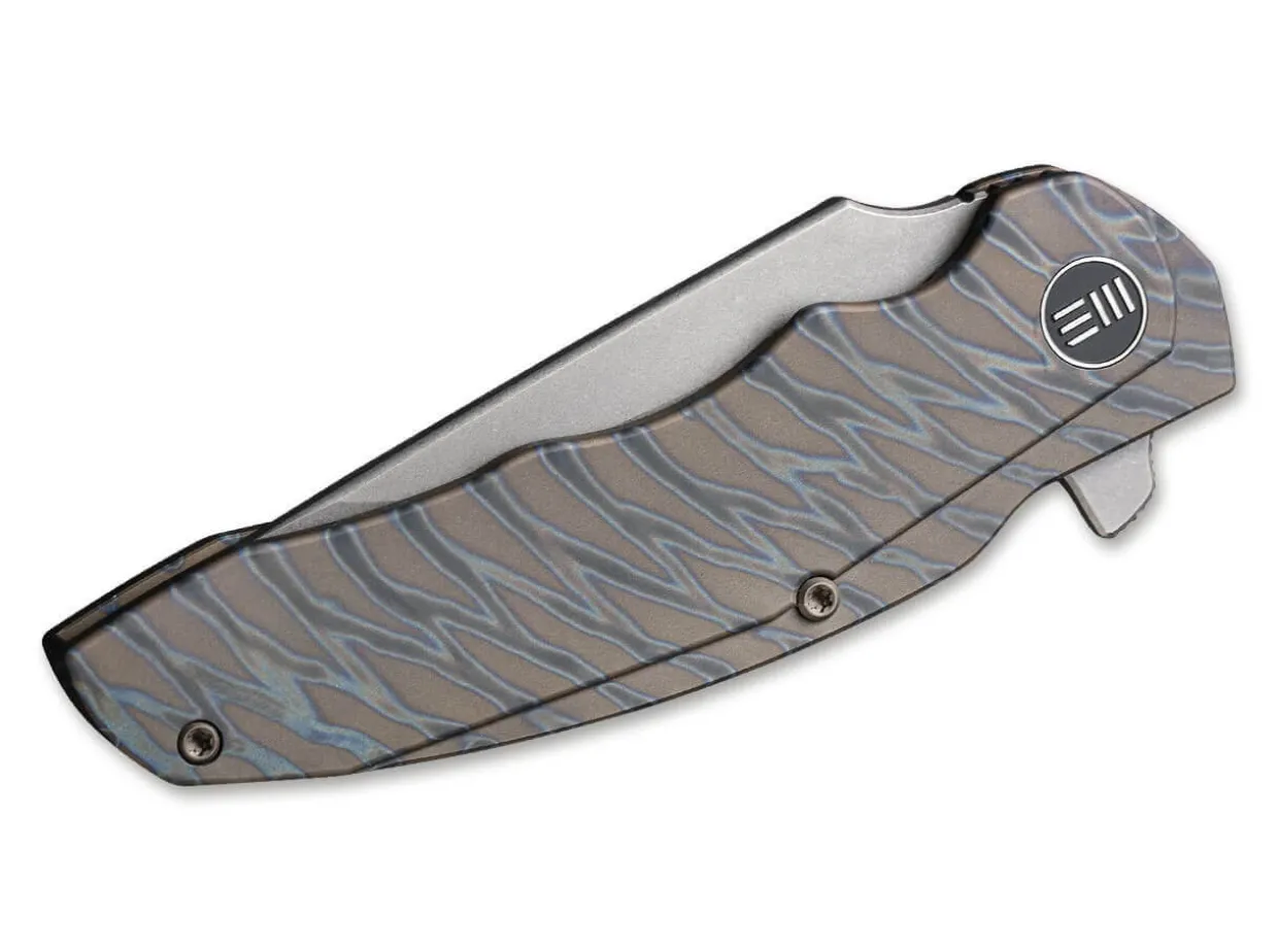 Knife Designer Butch Ball Has Taken It Upon Himself To Design The Skreech Titan Tiger Stripe, A Folder That Is Both Suitable For Everyday Use And Elegant At The Same Time. The Flipper Opens The Ball-Bearing Blade Made Of Powder Metallurgy Cpm-20Cv In No Time At All, While The Solid Framelock Secures The Knife. The Classy Titanium Handle With A Tiger Stripe Pattern Fits Perfectly In The Hand Thanks To Ergonomic Optimisation And Has A Clip (Tip-Up/R) For Attaching To A Trouser Pocket.