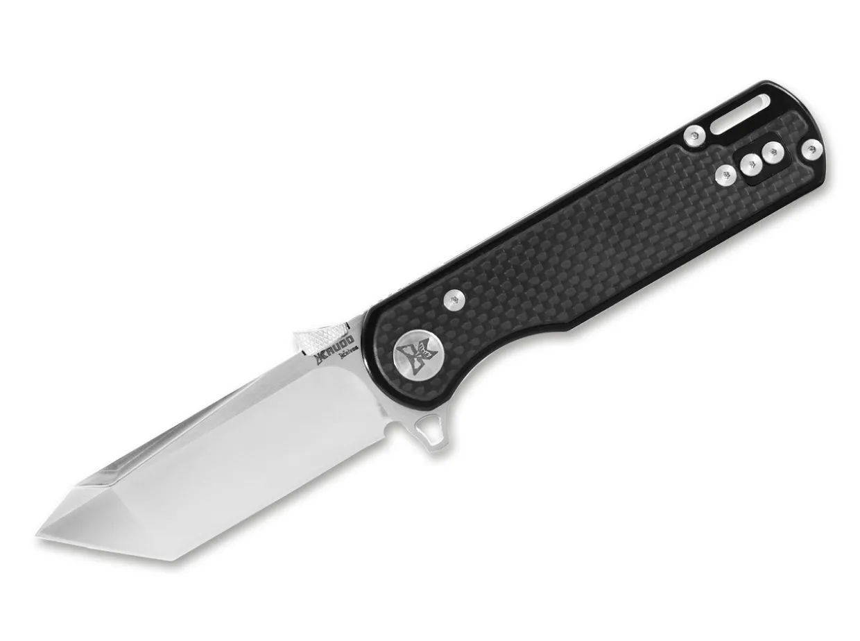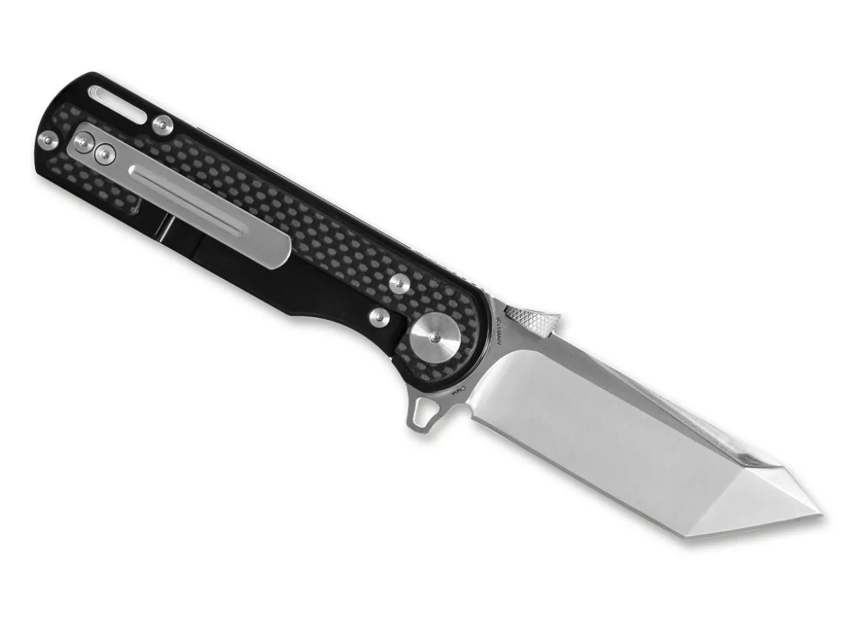 With The Strick9 Louis Krudo Presents His First Tanto Folder, Whose Elaborately Worked Blade Has Four Different Grinds. The Massive Tip Guarantees Outstanding Stability And Of Course The Strick9 Also Offers The Different Opening Methods By Thumb Stud, Flipper Or Wave Opener. The Convertible Clip (Tip-Up/L-R) And The Large Lanyard Hole Ensure Wearing Comfort And Easy Pulling. Blade With Ceramic Ball Bearing, Stainless Steel Handle, With Cleanly Fitted Carbon Fibre Inserts.