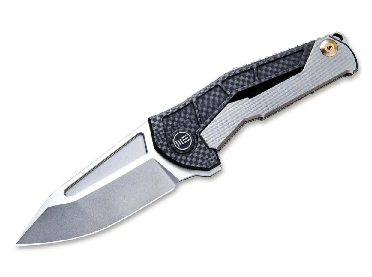 The We Knife Sugga 915A Is A Robust Knife From Designer Mikkel Willumsen. His Design Style Is Clearly Recognizable. The Large Format, Dramatic Blade Shape And Angular Handle Are Elements Typical Of Willumsen’S Style. The Angular Shape Gives The Knife An Industrial Look, Which Is Reinforced By The Milled Out Sections In The Handle That Are Reminiscent Of A Steel Construction.Despite Its Angular Shape, The Knife Feels Very Comfortable In The Hand. The Combination Of Carbon Fiber And Titanium In The Handle Is A Real Eye-Catcher. Because A Large Part Of The Construction Consists Of Carbon Fiber, The Sugga Is Surprisingly Lightweight For Its Size. The Blade Is Made From S35Vn, A Super-Strong Type Of Steel That Is Easy To Maintain. It Can Be Opened Quickly And Easily With The Flipper And Secured With The Sturdy Framelock. A Beautifully Milled Titanium Pocket Clip (Tip/Up) With A Ceramic Bullet Completes The Picture.