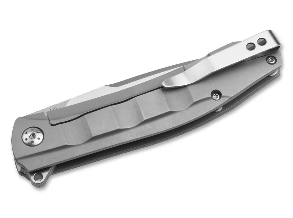 Smooth Blade Movements And A Low Weight Make The Boker Plus Talpid A Perfect Everyday Companion. The Tapered Spearpoint Blade Is Made From D2 And Has An Elegant Ricasso That Lends The Pocketknife A Dynamic Look. The Satinized Blade On Ball Bearings Is Opened With A Flipper That Also Protects The Hand. The Stainless Steel Handle Scales Are Cnc-Milled In 3D, Which Gives The Knife A Perfect Grip And An Extraordinary Appearance. The Pronounced Jimpings Of The Thumb Rest And The Sturdy Framelock Make The Knife Safe To Use. With A Deep-Carry Clip (Tip-Up) And High-Quality Nylon Case For Storage.