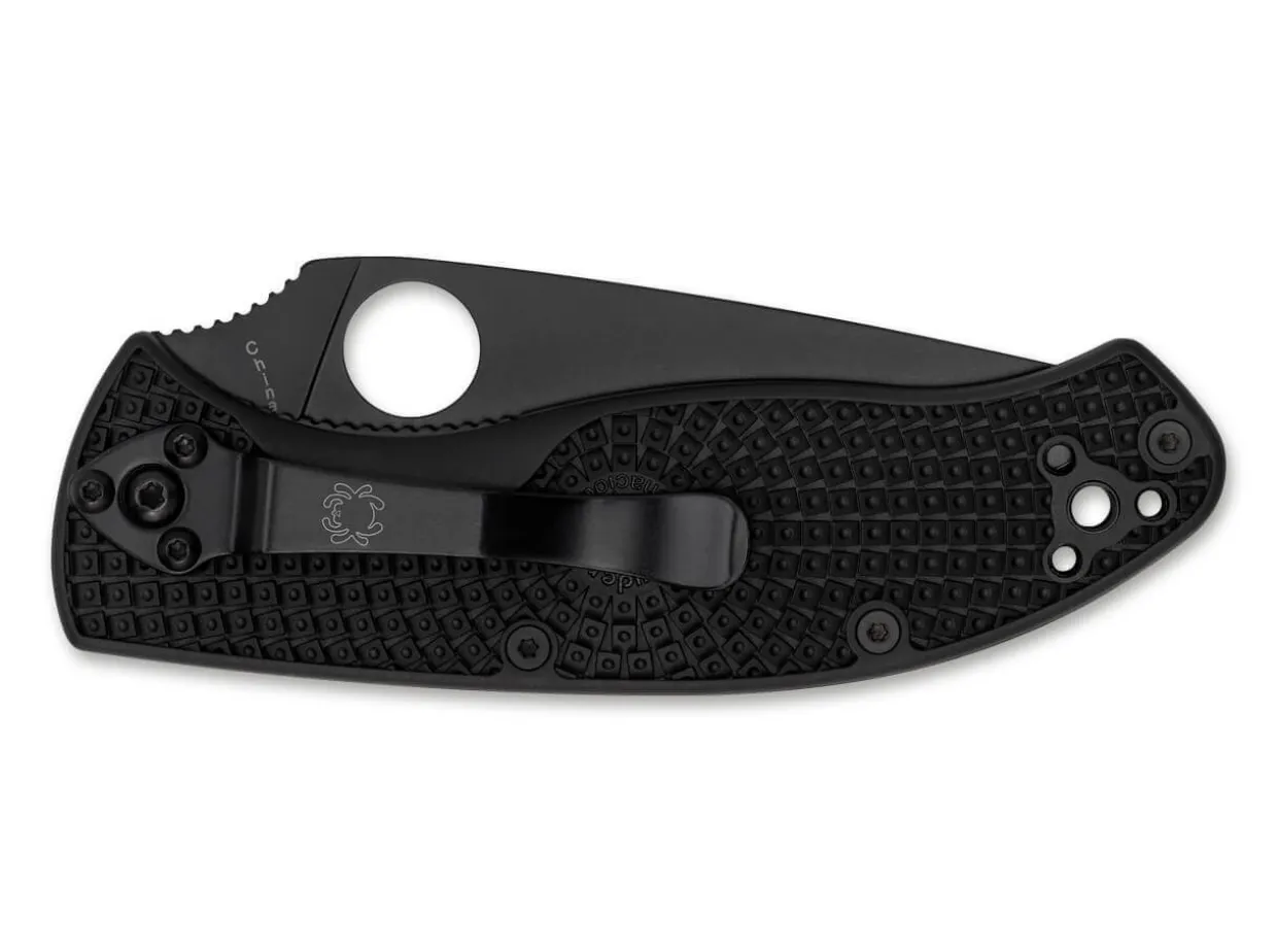 Das Spyderco Tenacious Lightweight Black Serrated Ist Ein Praktisches Taschenmesser Fur Den Alltag Und In Dieser Version Dank Der Strukturierten Griffschalen Aus Frn Noch Einmal Deutlich Leichter. Die Blattformige Klingenform Erlaubt Eine Vielzahl Von Einsatzmoglichkeiten, Von Groben Arbeiten Bis Hin Zum Feinen Schnitt. Die Schwarz Oxidbeschichtete Wellenschliff-Klinge Aus 8Cr13Mov Ist Konisch Geschliffen Und Erlaubt So Ein Besonders Effizientes Arbeiten. Die Geriffelte Daumenrampe Hilft, Bei Kraftigen Schnitten Druck Auf Die Klinge Auszuuben. Mit Linerlock, Fangriemenose Und Vierfach Umsetzbarem Clip.