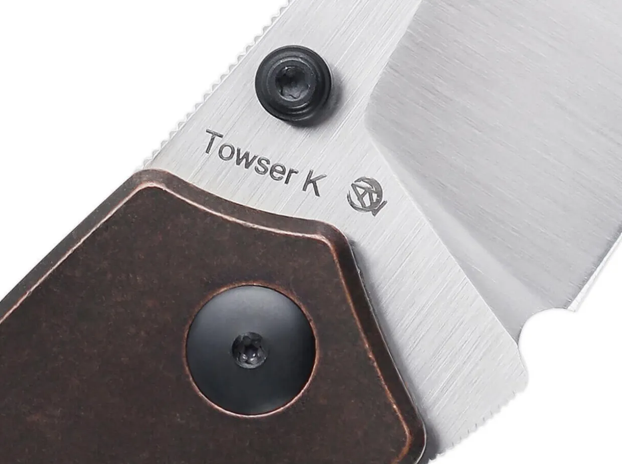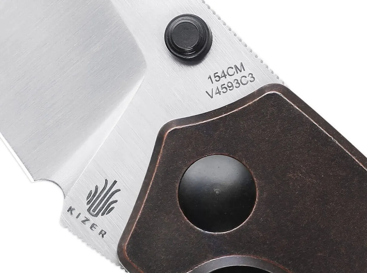 The Similarity To The Popular Kizer Sheepdog Series Is Unmistakable, So That Desiger Azo Also Transfers The Essential Elements To The Towser K. The 154Cm Ball Bearing Blade Is Opened By A Thumb Pin, While The Liner Lock Reliably Locks It In Place. The Unusual Blade Shape Captivates Every Knife Fan And Represents A Mixture Of Cleaver And Sheepfoot. A Unique Patina Develops On The Copper Handle Over Time, Making Each Knife One Of A Kind. The Tip-Up Clip Allows The Knife To Be Carried On Both Sides.