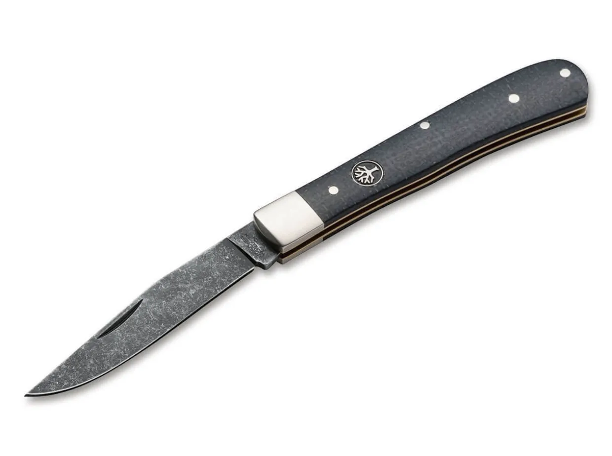 The Boker Trapper Uno Burlap Combines Tradition And Modernity As A Classic Slipjoint Pocket Knife. Besides The Scales Made Of Structured Burlap Micarta, The Knife Is Characterised By The Use Of Brass Liners And The Carbon Steel O1 As Blade Material, Which Is Hardened To 60 Hrc. To Emphasise The Authenticity Of The Knife, The Blade Is Given A Special Acid-Wash Finish, Which Also Protects It From Harmful Environmental Influences. The Trapper Uno Goes Without The Bolster At The End Of The Handle And Owes Its Name To This Modification. The Slim Design Makes This Traditional Knife The Perfect Everyday Companion. Handmade In The Boker Knife Manufactory Solingen.