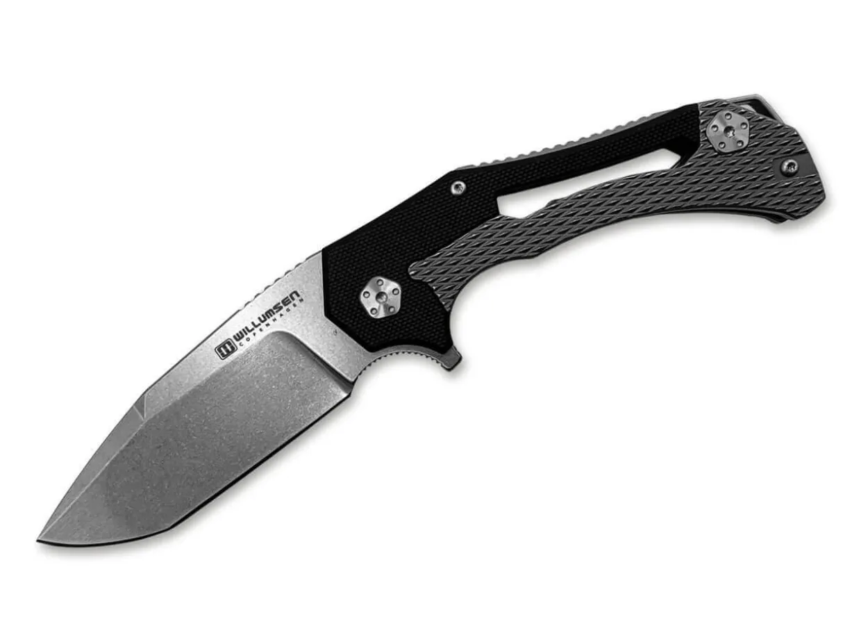The Modern Tyran Stone Black By Willumsen Commands Respect With Its Massive 440C Blade And Non-Slip G10 And Stainless Steel Handle. The Knife Humourlessly Claims Its Dominance Over Any Cutting Work In Everyday Life With The Flipper Opening. Only The Framelock Restrains The Cutting Madness Of The Pocket Knife. With A Clip (Tip-Up /R).