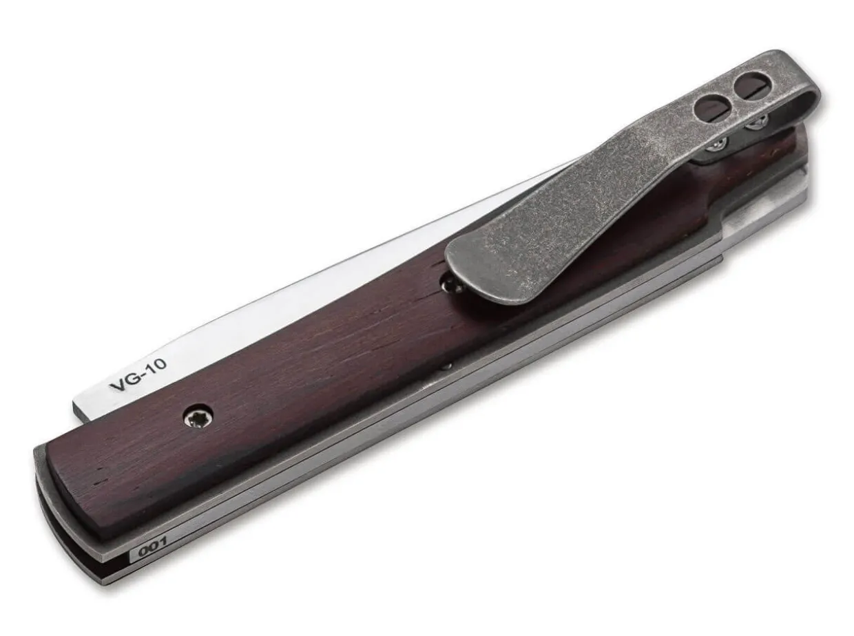 The Smallest Version Of The Boker Plus Urban Trapper By Brad Zinker Is Now Available With An Additional Locking Mechanism Thanks To The New Patented Wire Hanger Backlock. Due To The Space-Saving Wire Hanger, No Additional Upper Spring Is Needed Any More, Which Gives The Blade Considerably More Space In The Handle. The Blade Made Of Vg-10 With A Fine Hairline Finish Is Equipped With A Nail Nick For Two-Handed Operation. The Noble Handle Scales Made Of Selected Cocobolo Wood Emphasise The Noble Character Of This Extremely Light Gentleman’S Knife. With Deep Carry Clip (Tip-Up/R) And A High-Quality Nylon Case.