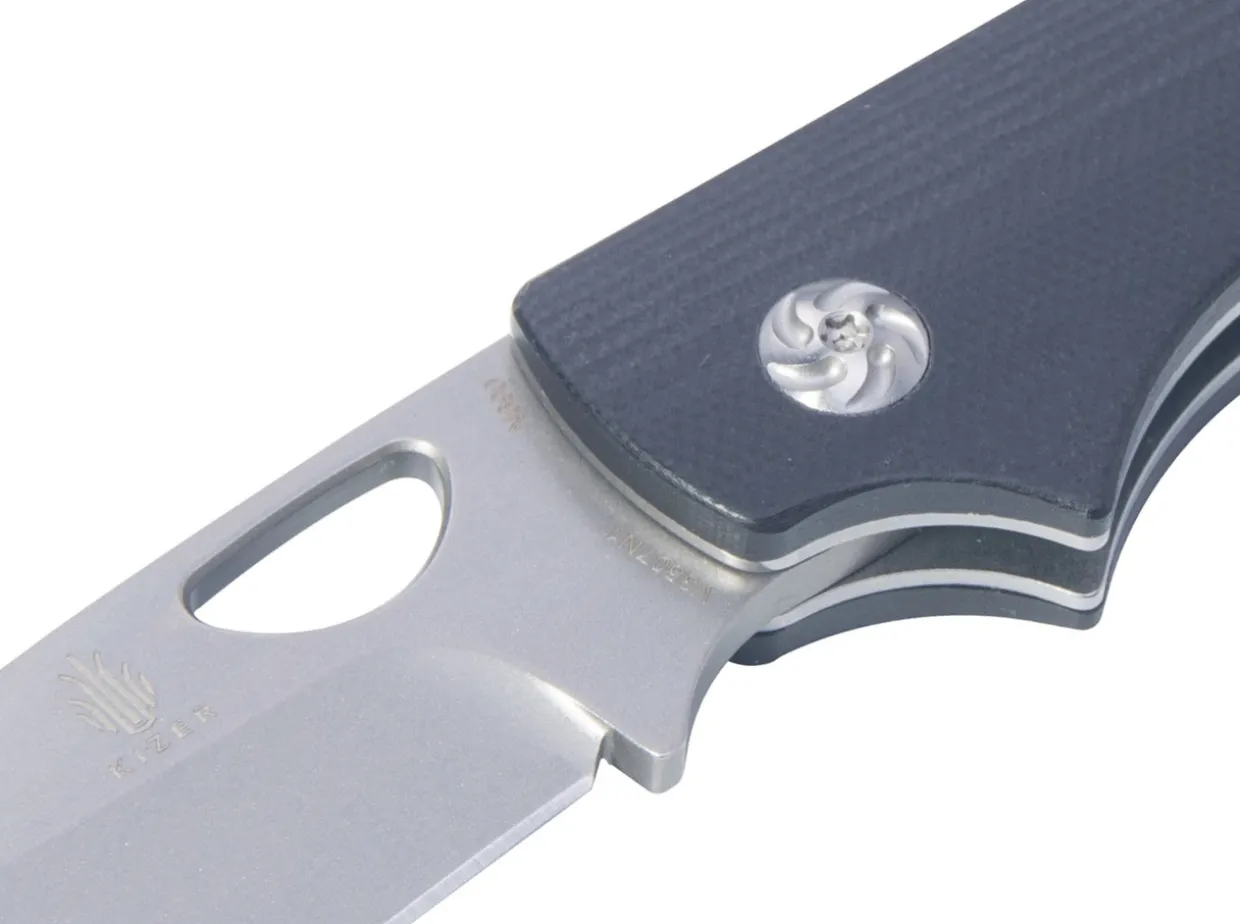 The Kizer Zipslip Is A Sturdy Slipjoint Pocket Knife With One-Handed Opening And Black G10 Handle Scales. The N690 Blade Ensures Excellent Edge Retention. The Special Feature Of This Construction Is The Back Spring That Doesn’T Rise When The Knife Is Opened Or Closed, But Always Lies Flush With The Back Of The Handle. With Clip (Tip-Up).