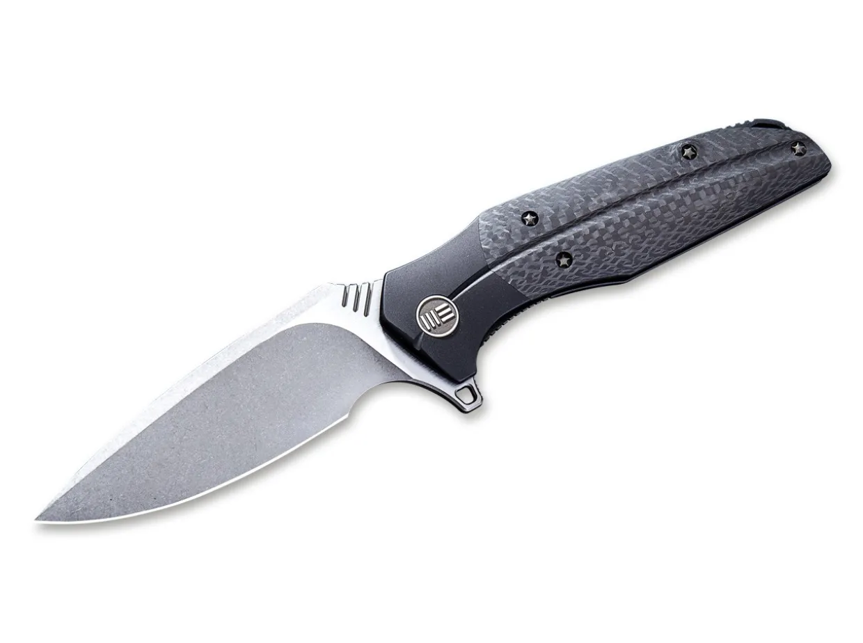 The We Nitida Is A Beautifully Curved Folder With A Titanium Framelock And Carbon Fiber Overlay On The Front Handle. The Clip (Tip-Up) And Back Piece Are Made From Solid Milled Titanium, The Screws And Blade Shaft Cover Are Titanium As Well. The Blade On Ceramic Ball Bearings Consists Of Cpm-S-35Vn.