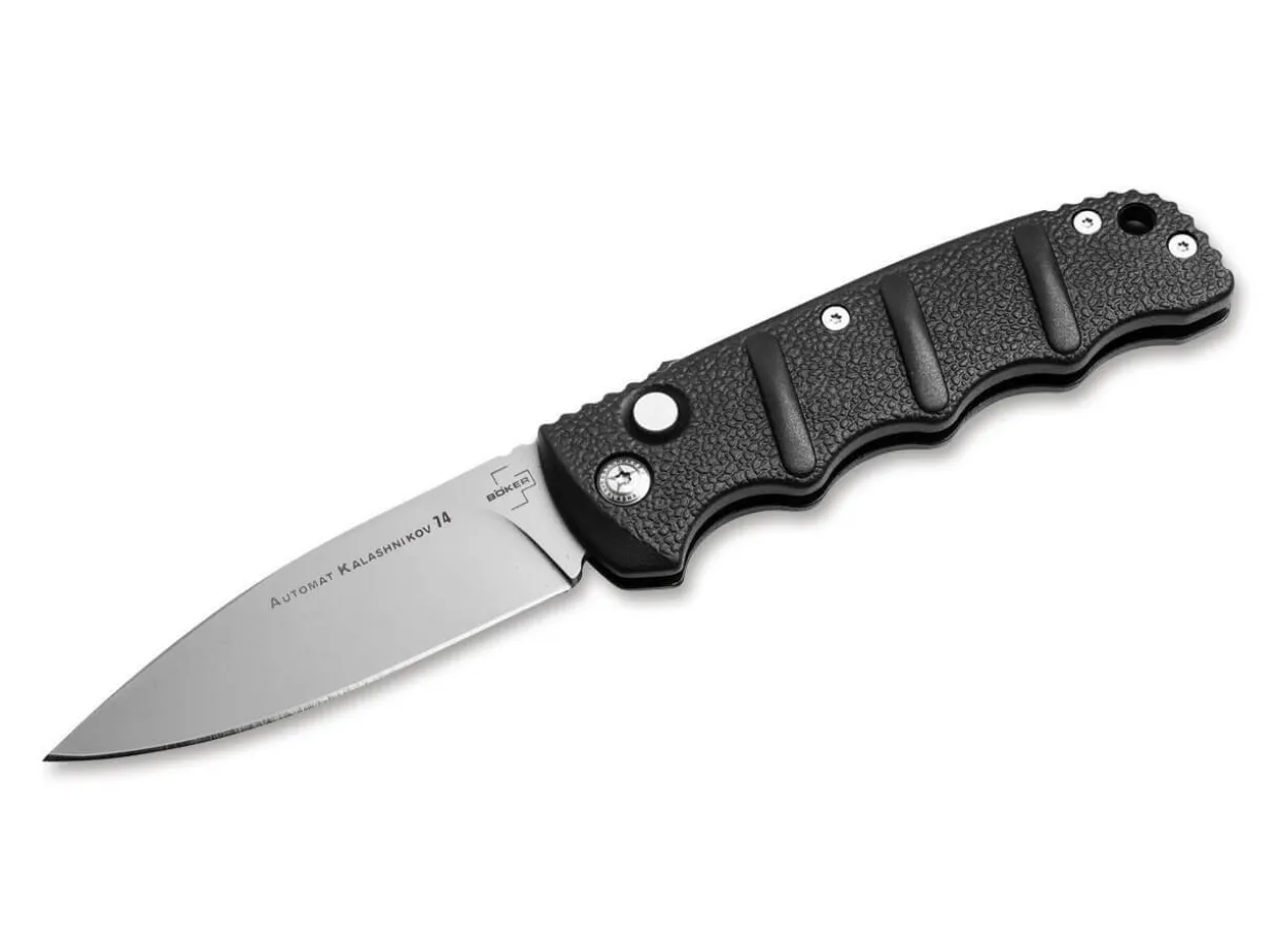 The Boker Plus Aks-74 From The Kalashnikov Series Is Certainly One Of The Most Popular Models In Our Range And Has Been Produced In Numerous Different Variants Over The Years. The Black Aluminium Handle Is Strongly Reminiscent Of The Bayonet Of The Famous Assault Rifle, And The Raised Textured Grooves Also Provide A Secure Grip In Any Situation. The Blasted Blade Is Made Of D2 Stainless Steel And Can Be Secured By Slide Lock In Addition To The Push Button. With A Lanyard Hole And A Practical Clip (Tip-Up/R).