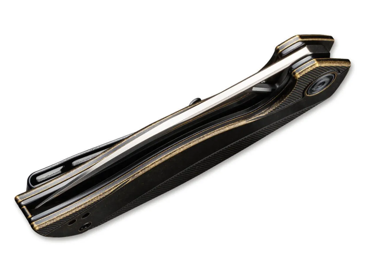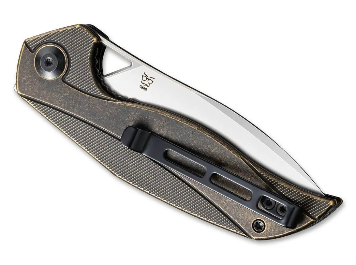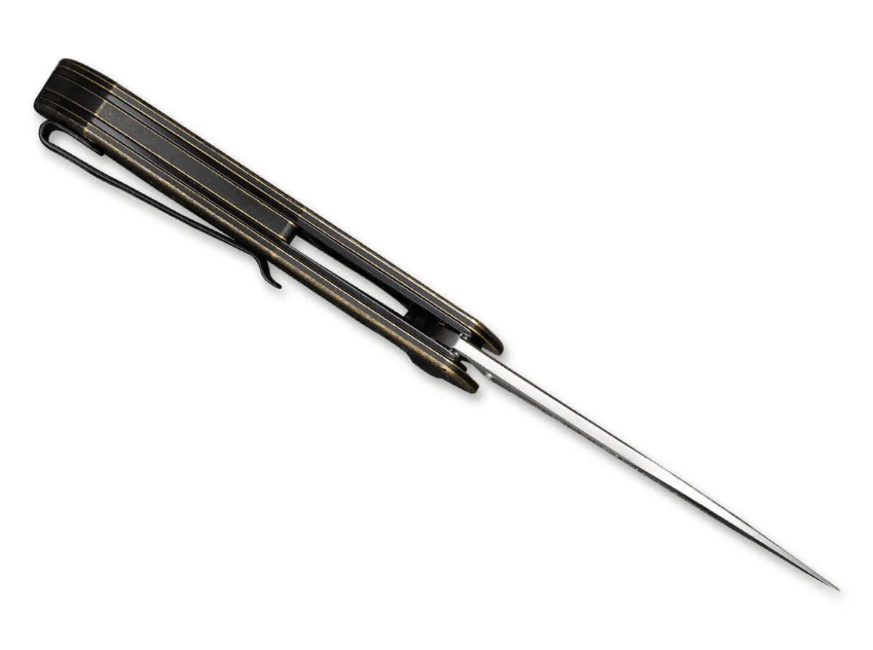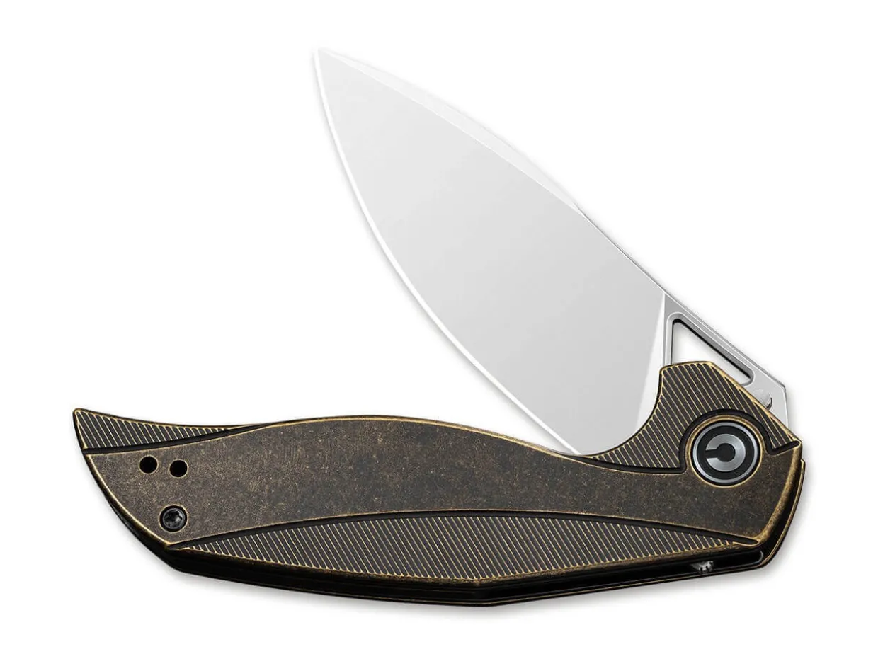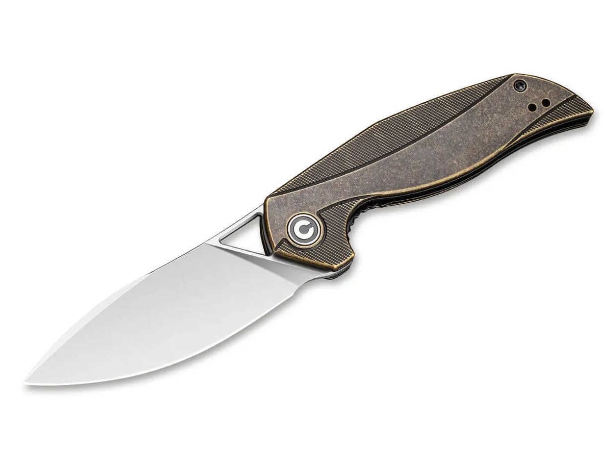 The Elegant Civivi Anthropos Brass By Elijah Isham Is Equipped With Stainless Steel Liners, A Linerlock And A Brass Handle. The D2 Blade Has Ball Bearings And Opens By Front Flipper. The Convertible Stainless Steel Clip (Tip-Up/L-R) Ensures Ambidextrous Carry.