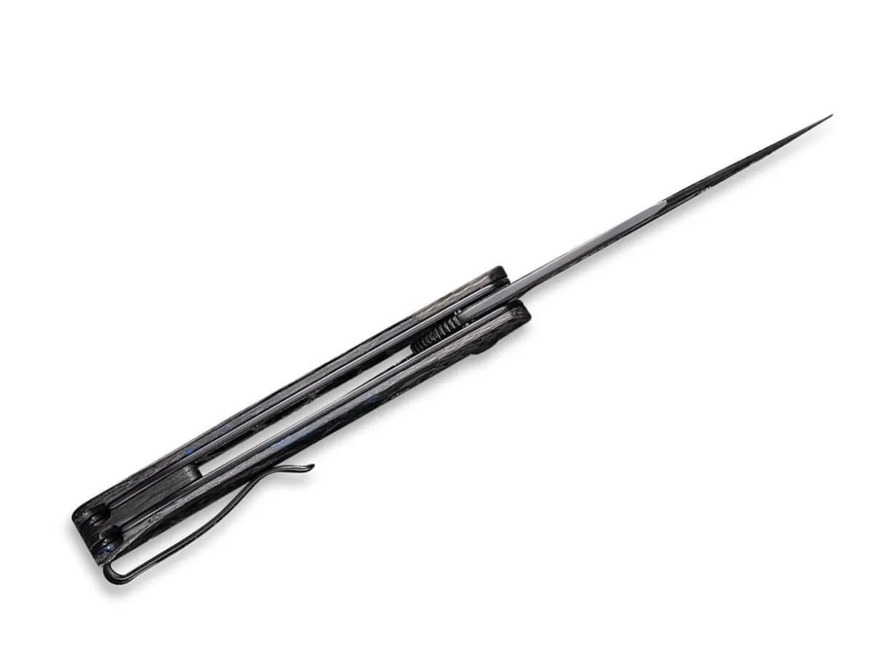 Influenced By The Spirit Of The Long Range Mountains In The Appalachians, The Civivi Appalachian Drifter Ii Cf Blue Damascus Cuts Its Way Through All The Rough Everyday Cutting Tasks. The Blade Made Of Classy Damascus Is Opened With A Nail Nick And Secured By The Sturdy Linerlock. The Handle Made Of Blue Stabilised Wild Carbon Fibre Follows The Shapes Of The Gentle Hills Of The Mountain Range And Lies Securely In The Hand. Supplied With A Clip (Tip-Up/R).