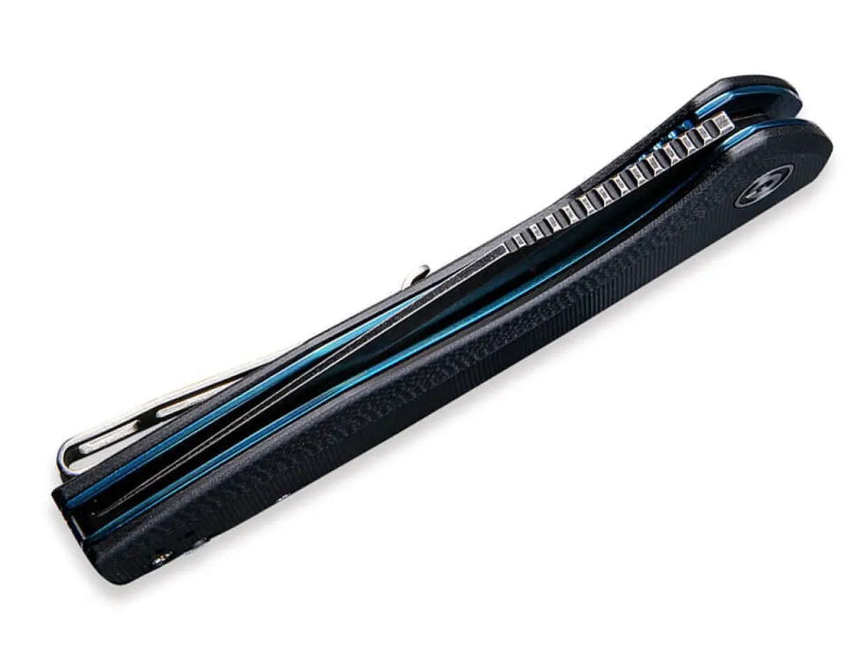 Das Civivi Backlash Ist Mit Einer Hohl Geschliffenen Droppoint-Klinge Aus Rostfreiem 9Cr18M0V Ausgestattet, Die Mit Einem Dunklen Stonewash-Finish Versehen Ist Und Per Flipper Geoffnet Wird. Die Griffschalen Bestehen Aus Schwarzem G10, Der Blaue Liner Setzt Einen Reizvollen Farblichen Akzent. Mit Umsetzbarem Clip (Tip-Up/L-R).