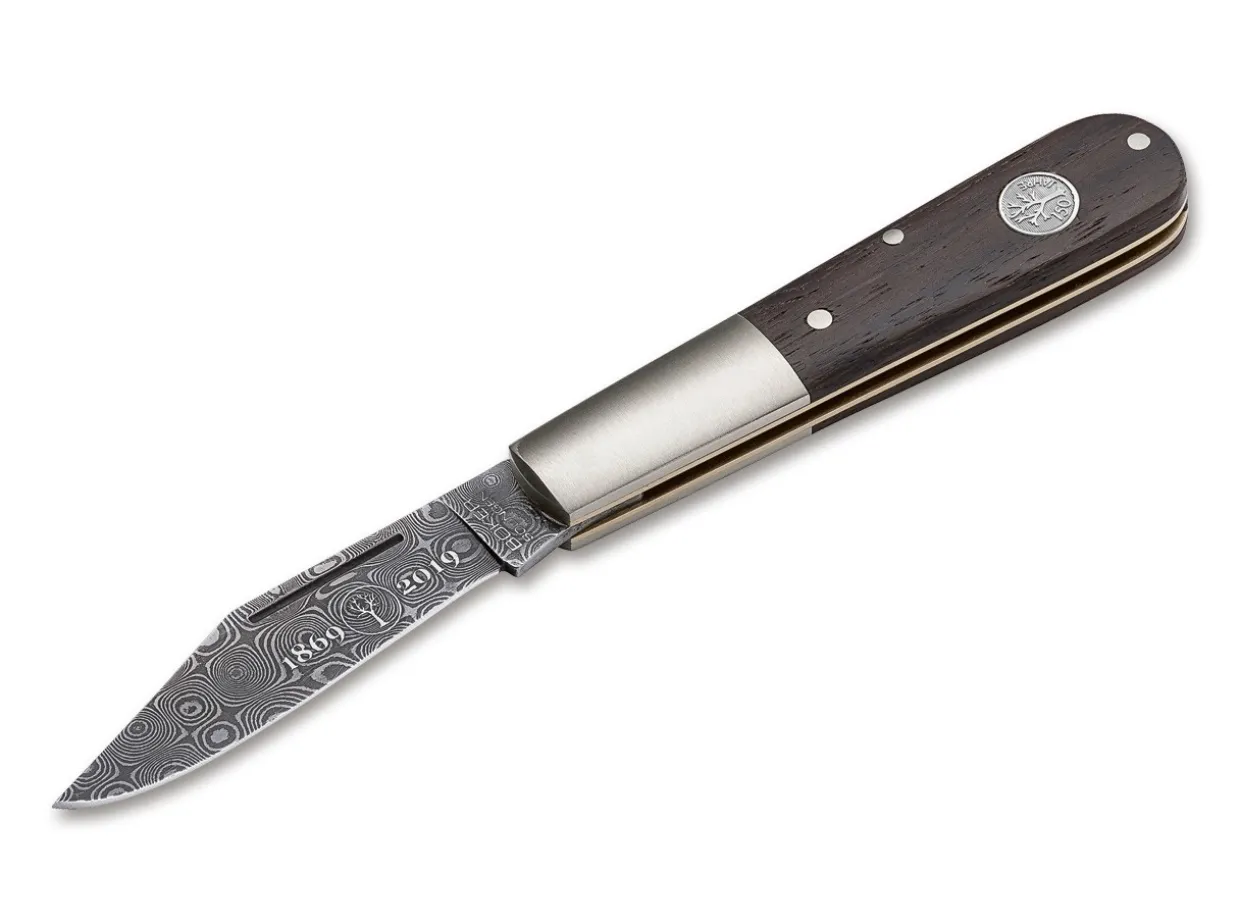 Each Knife In The Anniversary Damascus Series Is Equipped With A Handle Scale Of A Material Which Is Almost As Historic As The Blade – The Boker Logo Dates Back To The Huge Chestnut Tree That Graced The Yard Of Our First Facility, And Though It Had Been Destroyed By A Thunderstorm In The Early 20Th Century, The Choice Of Local Smoked Chestnut Wood For The Handle Scales Still Keeps The Origin Of Our Logo Alive In Every Single Knife In The Series. Each Knife Is Handmade In Our Boker Manufactory In Solingen, And Delivered With A Certificate Of Authenticity, And In An Anniversary Frame Display For An Attractive Presentation. Each Model Is Individually Numbered And Strictly Limited To 150 Pieces Worldwide.
