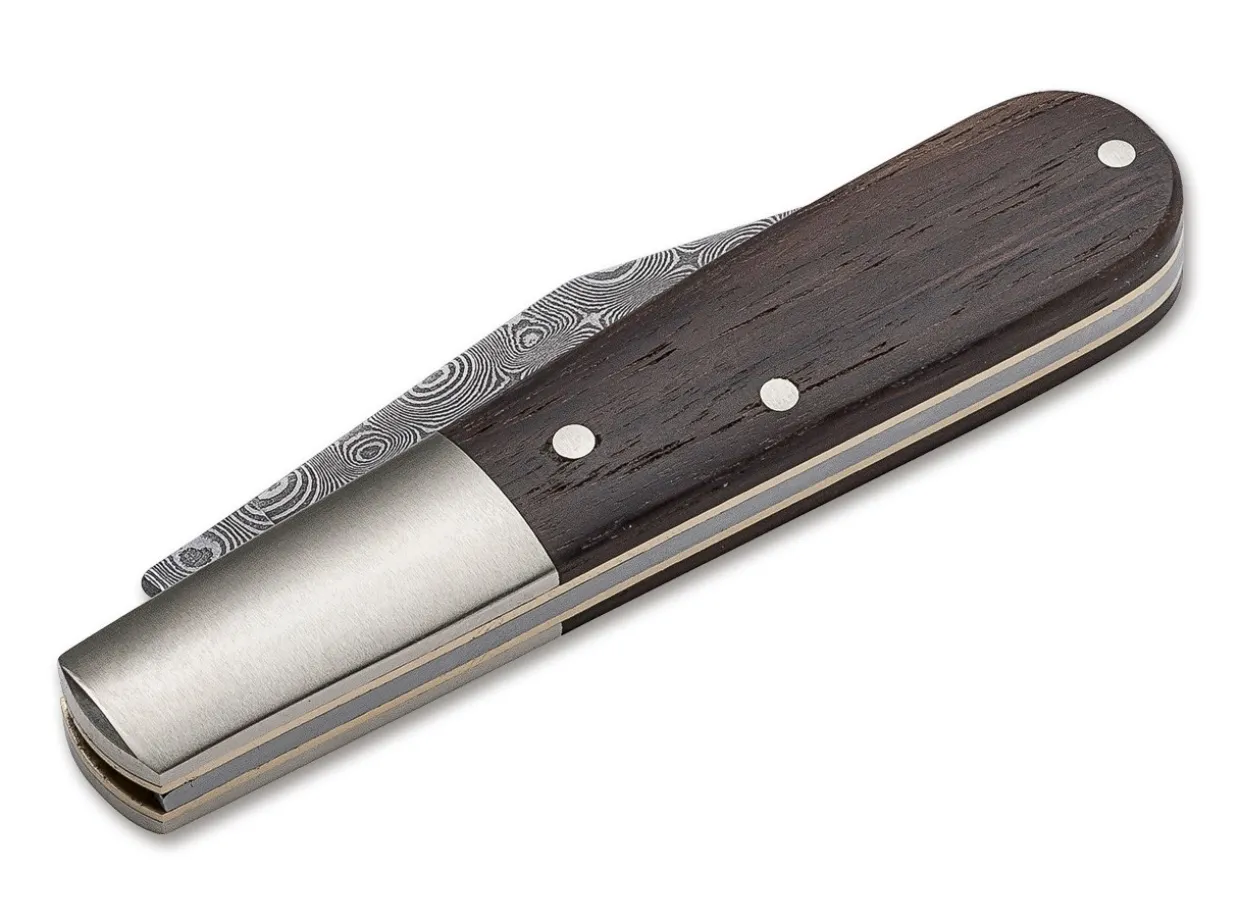 The Classic Barlow, With The Blade Made Out Of The Unique Steam Engine Damascus And Handle Scales Crafted Of Smoked Chestnut Wood.