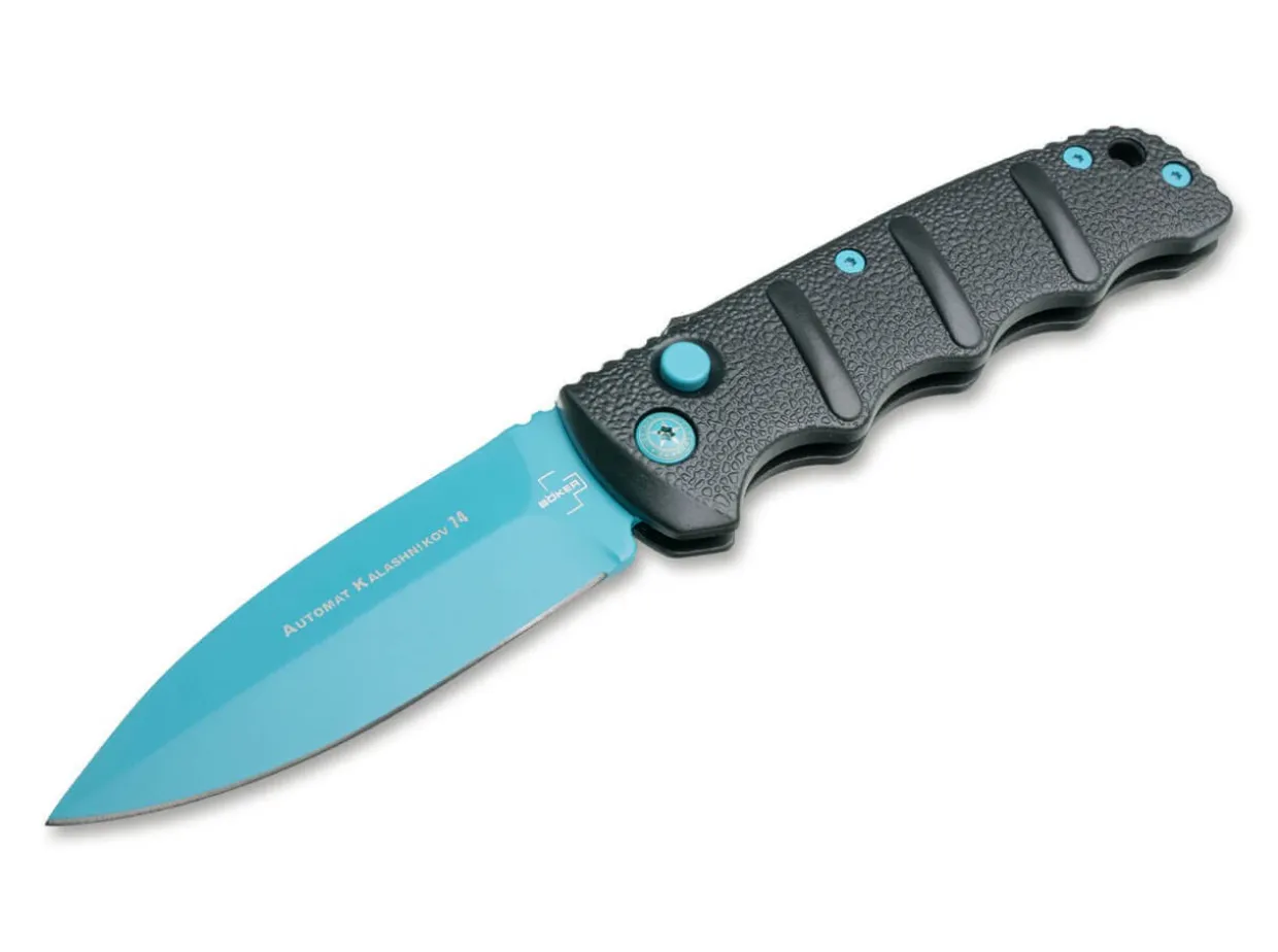 The Boker Plus Aks-74 From The Kalashnikov Series Is Certainly One Of The Most Popular Models In Our Range And Has Been Produced In Numerous Different Variants Over The Years. The Blade And Bolts Of The Exclusive Blue Scorpion Edition Have A Blue Coating. The Black Aluminum Handle Is Strongly Reminiscent Of The Bayonet Of The Famous Assault Rifle And The Raised Textured Tracks Provide A Secure Grip In Any Situation. The Blue Spearpoint Blade Is Made Of Aus-8 Stainless Steel And Can Be Secured By Slide Lock In Addition To The Push Button. With Lanyard Hole And Practical Deep Carry Clip (Tip-Up).