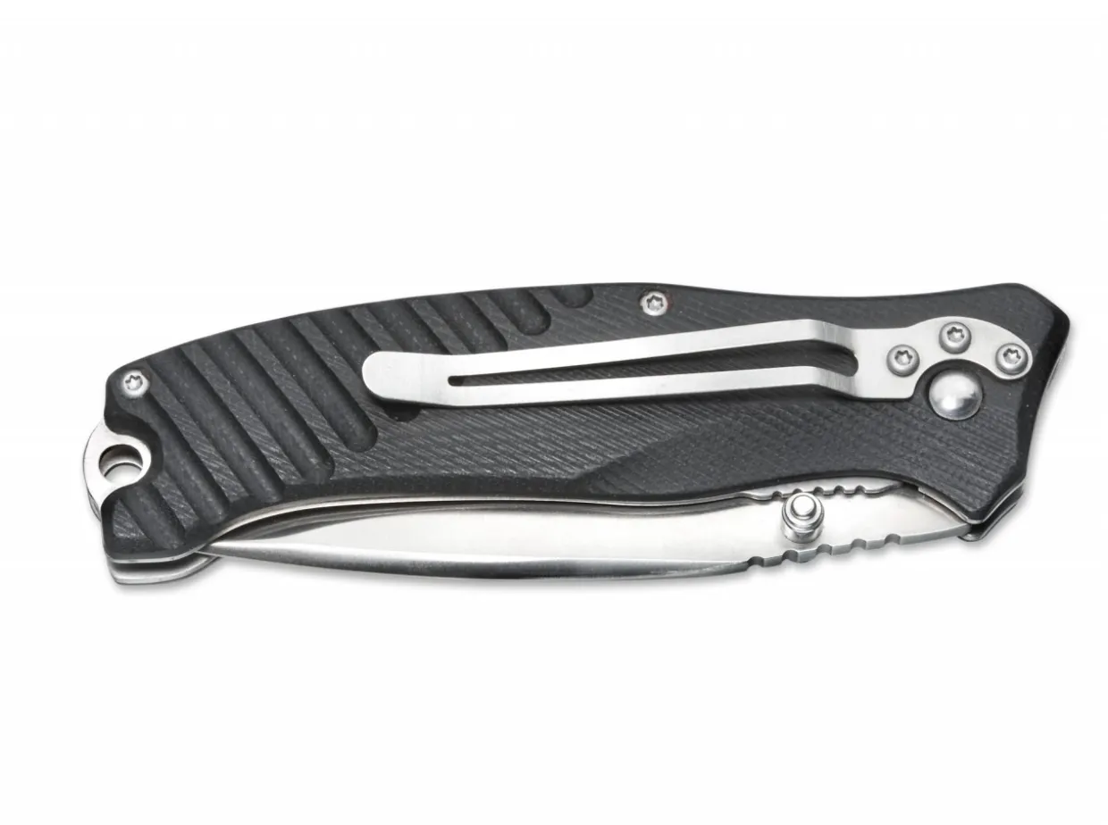 A Knife Like A Good Buddy, Reliable And Loyal. The Slightly Modified 440A Spear Point Blade Is Engaged With The Liner Lock. The Black G10 Scales Provide Secure And Pleasant Handling For Any Chore. Includes Clip And Lanyard Hole.