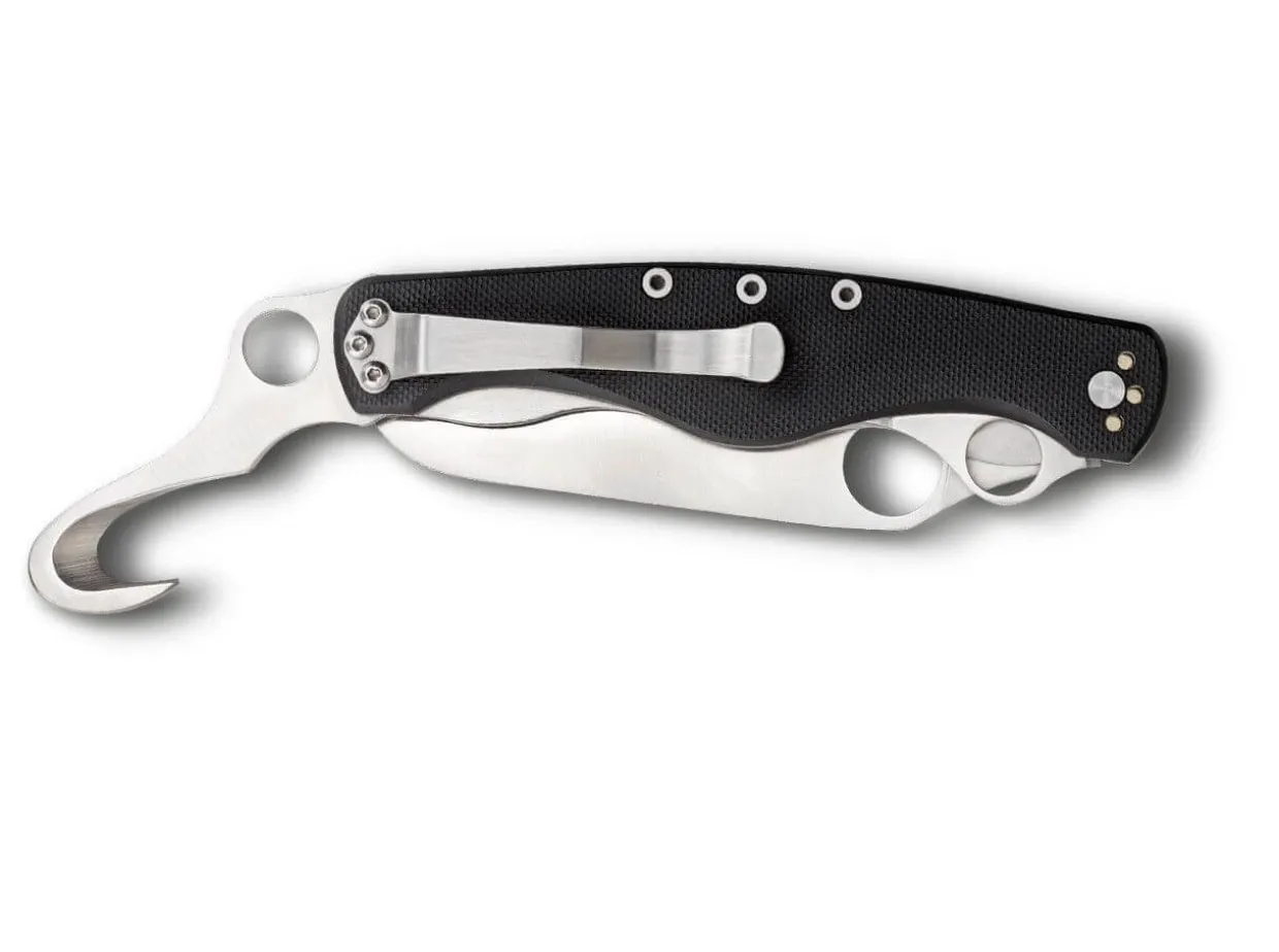 Das Spyderco Clipitool Rescue Verbindet Die Vielseitigkeit Eines Klassischen Mehrklingenmessers Mit Dem Komfort Eines Modernen Einhandmessers Und Ist Dabei Fur Rettungszwecke Optimiert. Die Sheepfoot-Klinge Mit Stumpfer Spitze Ist Vollstandig Mit Dem Bissigen Spyderedge-Wellenschliff Versehen Und Verriegelt Per Linerlock. Die Hakenklinge Eignet Sich Hervorragend Zum Entfernen Von Kleidung Und Stiefeln Bei Verletzten Und Verriegelt Ebenfalls Per Liner Lock. Der Zusatzliche Schraubendreher Wird Per Slipjoint Offengehalten. Ein Umsetzbarer Clip Am G10-Griff Ermoglicht Es, Das Clipitool Rechts Tip-Up Oder Tip-Down Zu Tragen. Alle Klingen Gefertigt Aus 8Cr13Mov.